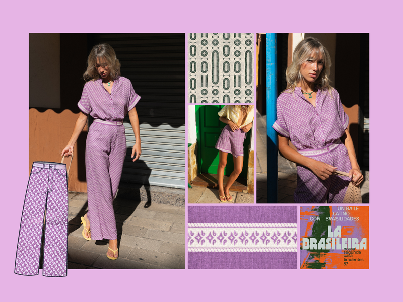 Un imprimé exclusif LAURE+MAX qui évoque la douceur vibrante d’un été à Rio. Sur un fond violet lumineux, un motif graphique répété dessine un rythme presque hypnotique, comme une cadence de samba au soleil. À la fois doux et affirmé, il capte la lumière et donne du mouvement à la silhouette. Porté en total look ou associé à une pièce unie, il insuffle instantanément de la personnalité au vestiaire. Ipanema, c’est un imprimé solaire et libre, pensé pour apporter de la couleur, du style et une énergie joyeuse au quotidien.