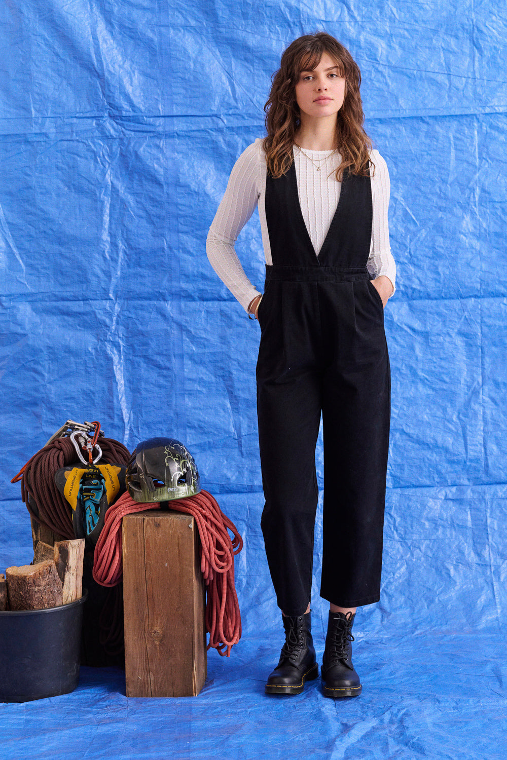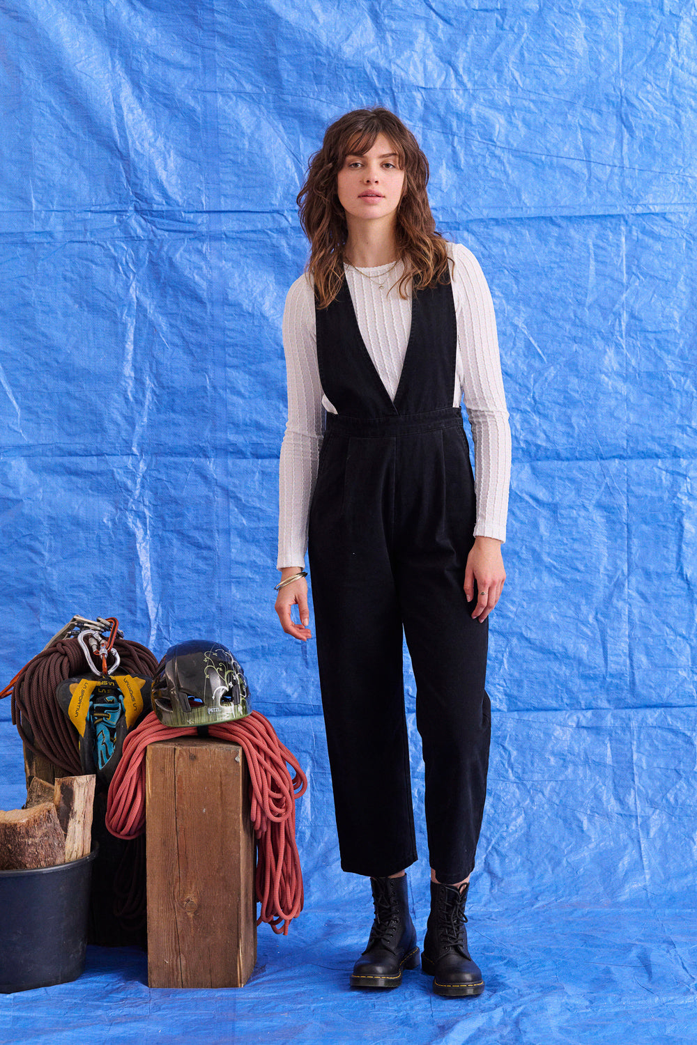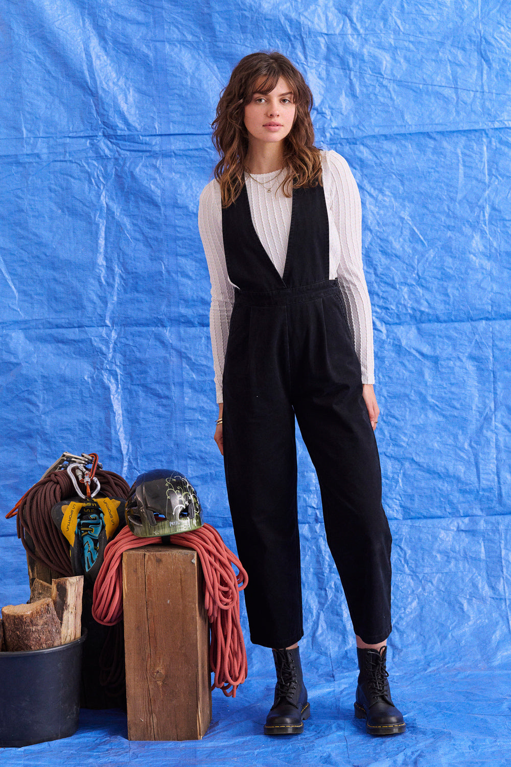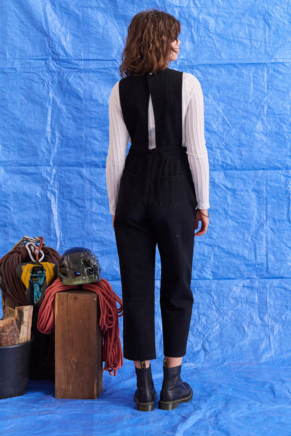 Parfaite pour donner du caractère à un look, cette combinaison noire a ce twist cool qu’on adore : un grand décolleté façon tablier devant, et un dos boutonné qui change tout. Il y a un lien à la taille avec un stopper, ultra pratique pour ajuster et marquer la silhouette à sa façon.
