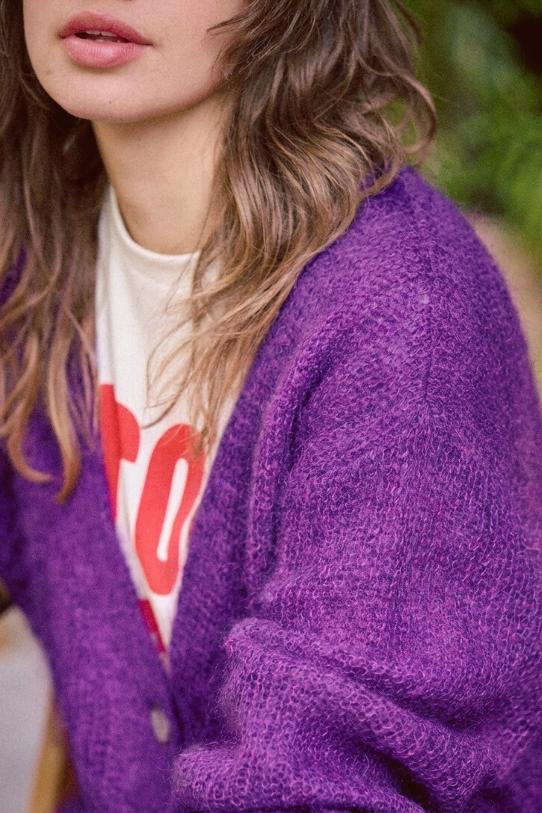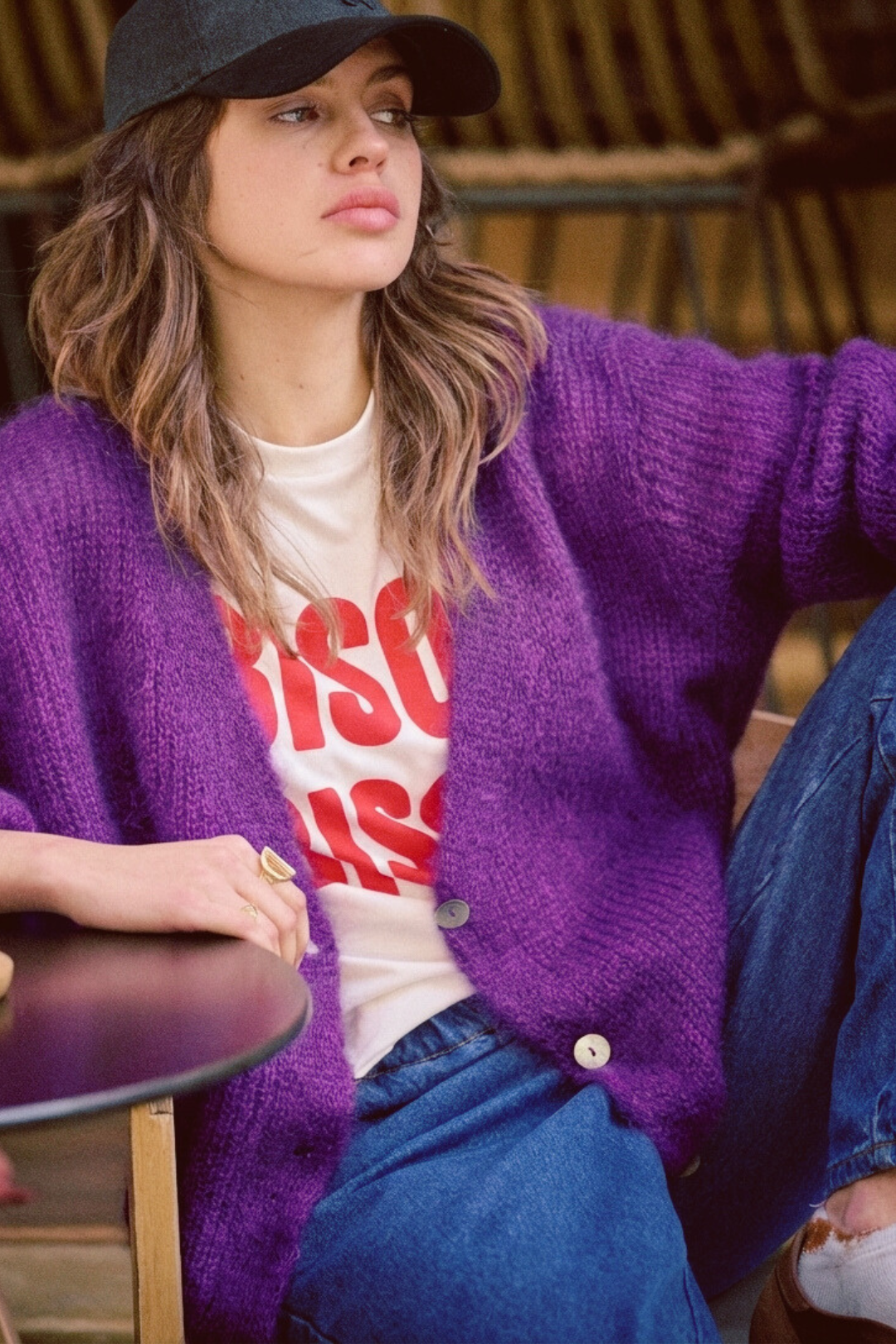 Ce gilet oversize en maille vaporeuse se glisse partout : sur un t-shirt imprimé, un jean taille haute ou une robe légère. Sa coupe ample donne une allure cool et décontractée, et son fuchsia fait le reste, il illumine le teint.