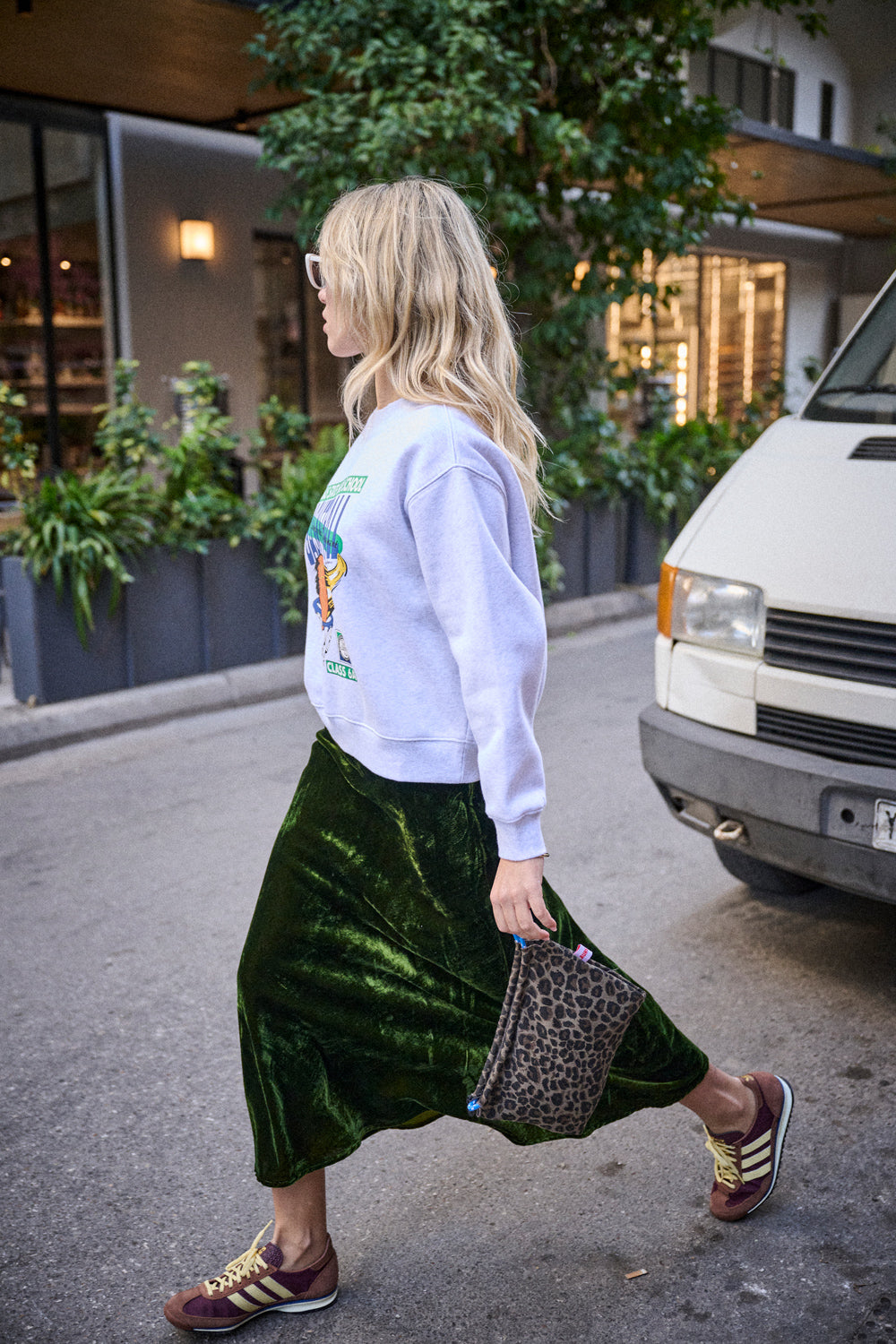 Sur les photos, Berta porte également le sweat Nir imprimé basketball.