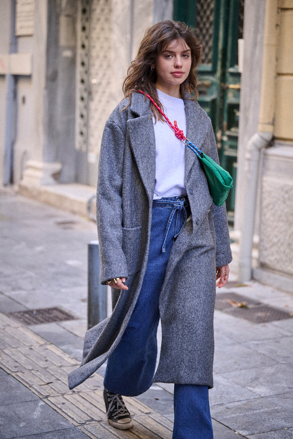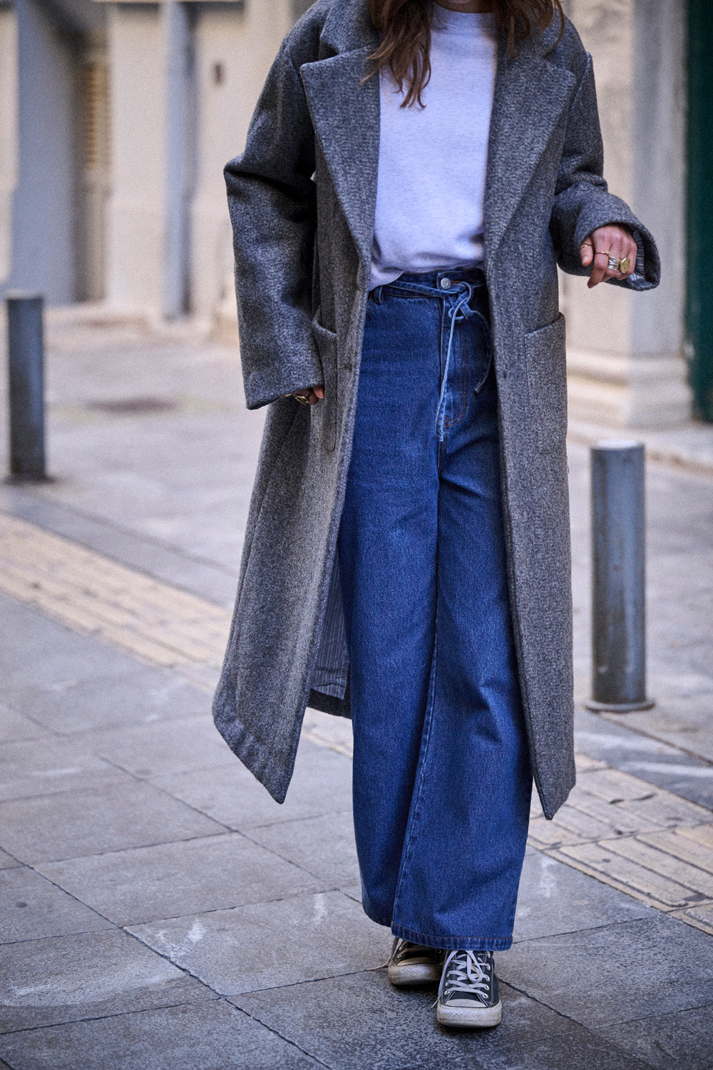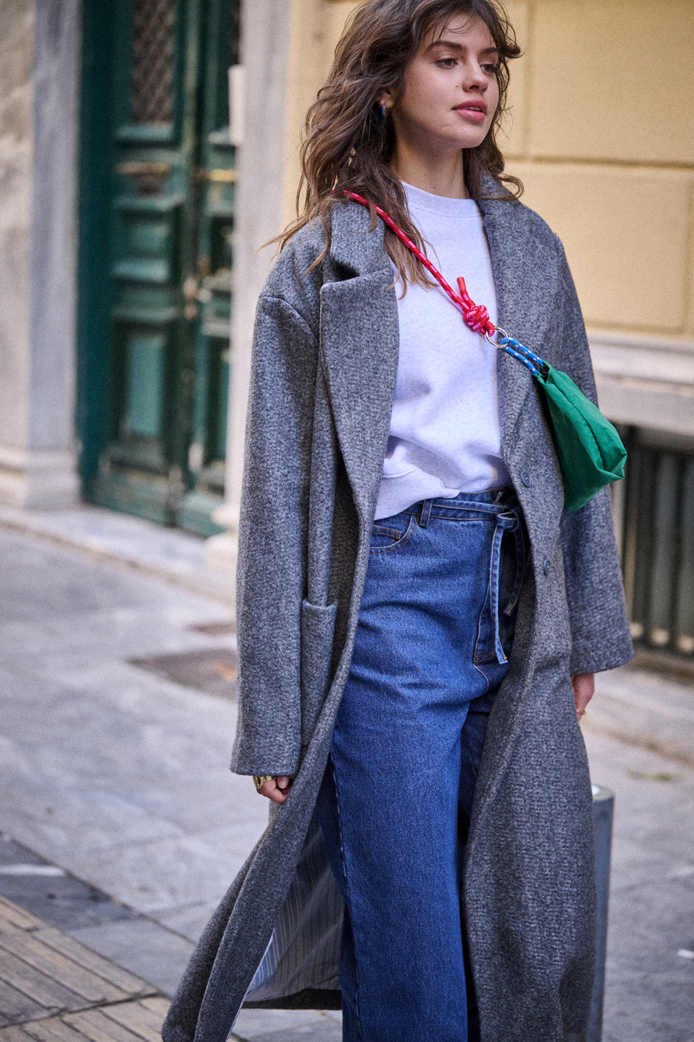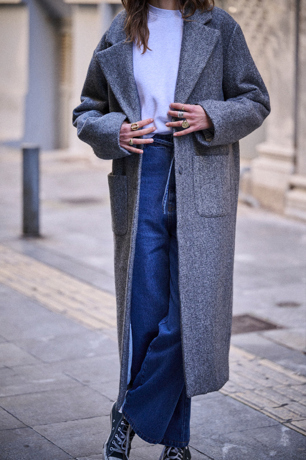 Le manteau long gris qui traverse les saisons sans jamais se démoder. Sa coupe droite et oversize lui donne une allure cool et affirmée, tout en restant facile à superposer sur un jean ou une jupe.