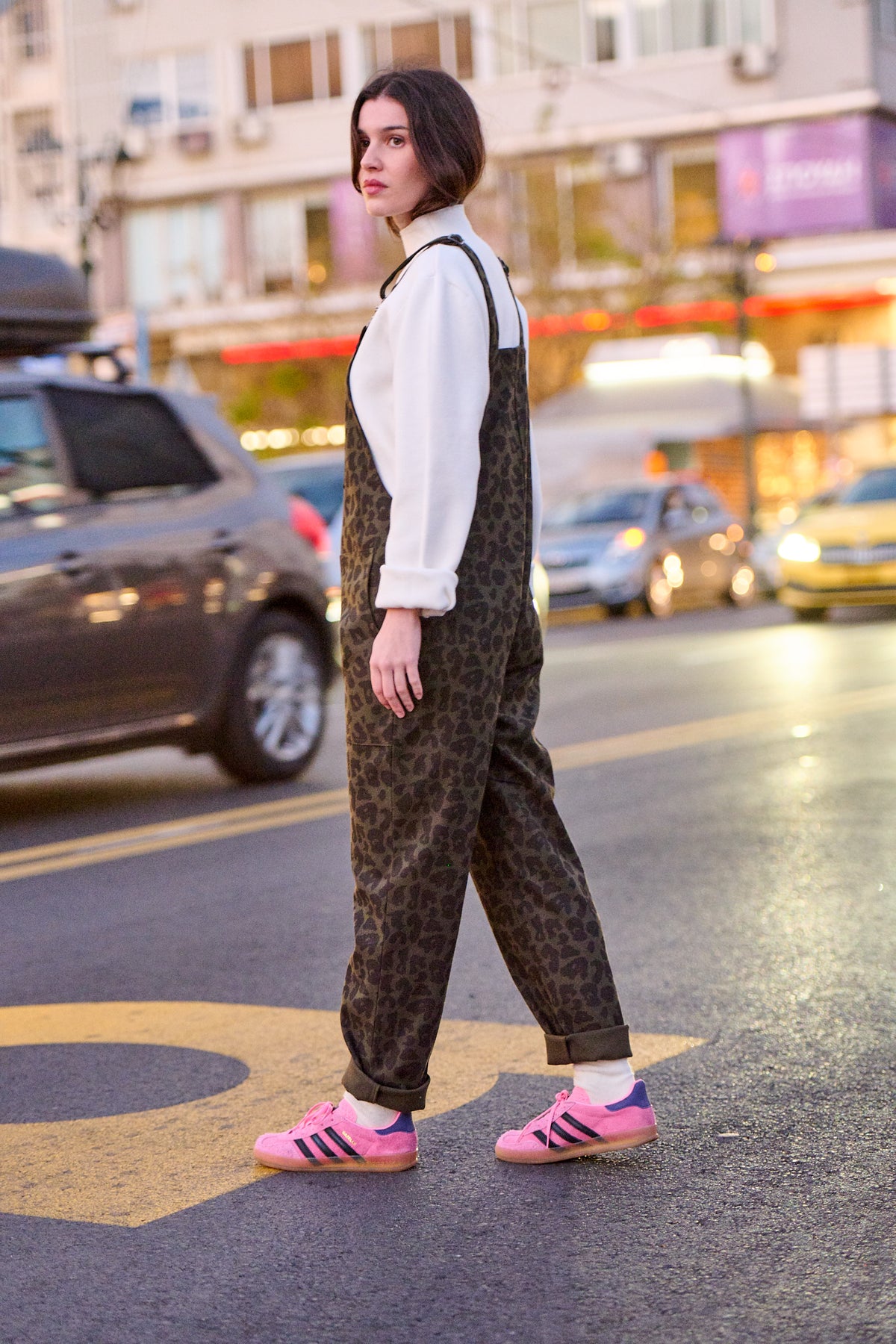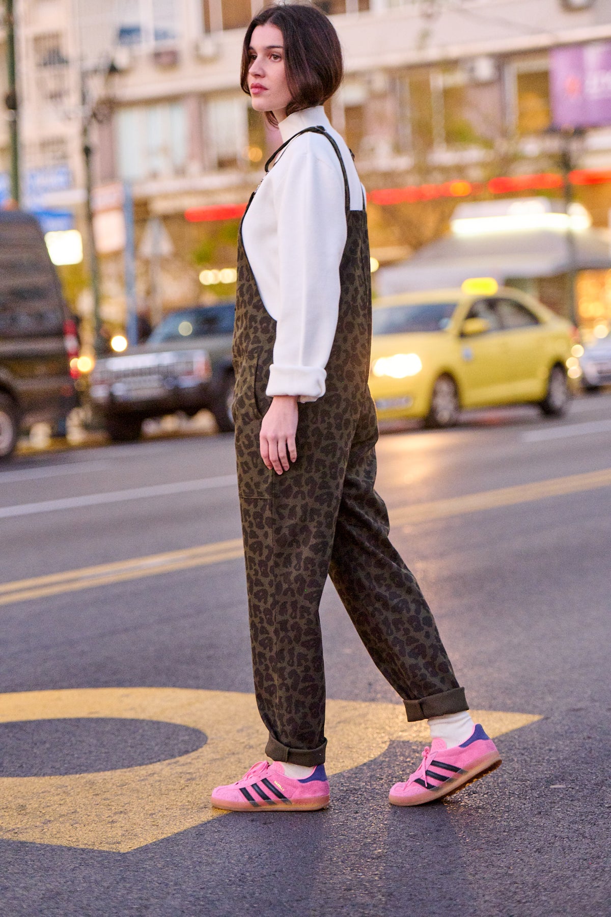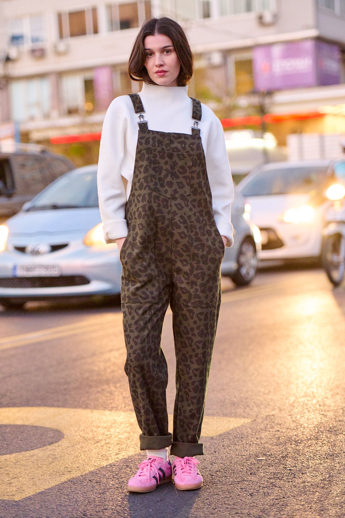 " OULAN-BATOR c'est notre salopette que vous aimez depuis plusieurs saisons déjà ! On la décline cette saison dans un nouvel imprimé léopard pour lui donner encore plus de caractère. Portez-la avec un pull uni noir ou écru pour les looks faciles et pratiques du quotidien. Et si vous voulez la twister un peu, portez en dessous un grand sweat gris chiné imprimé pour un look canon! "