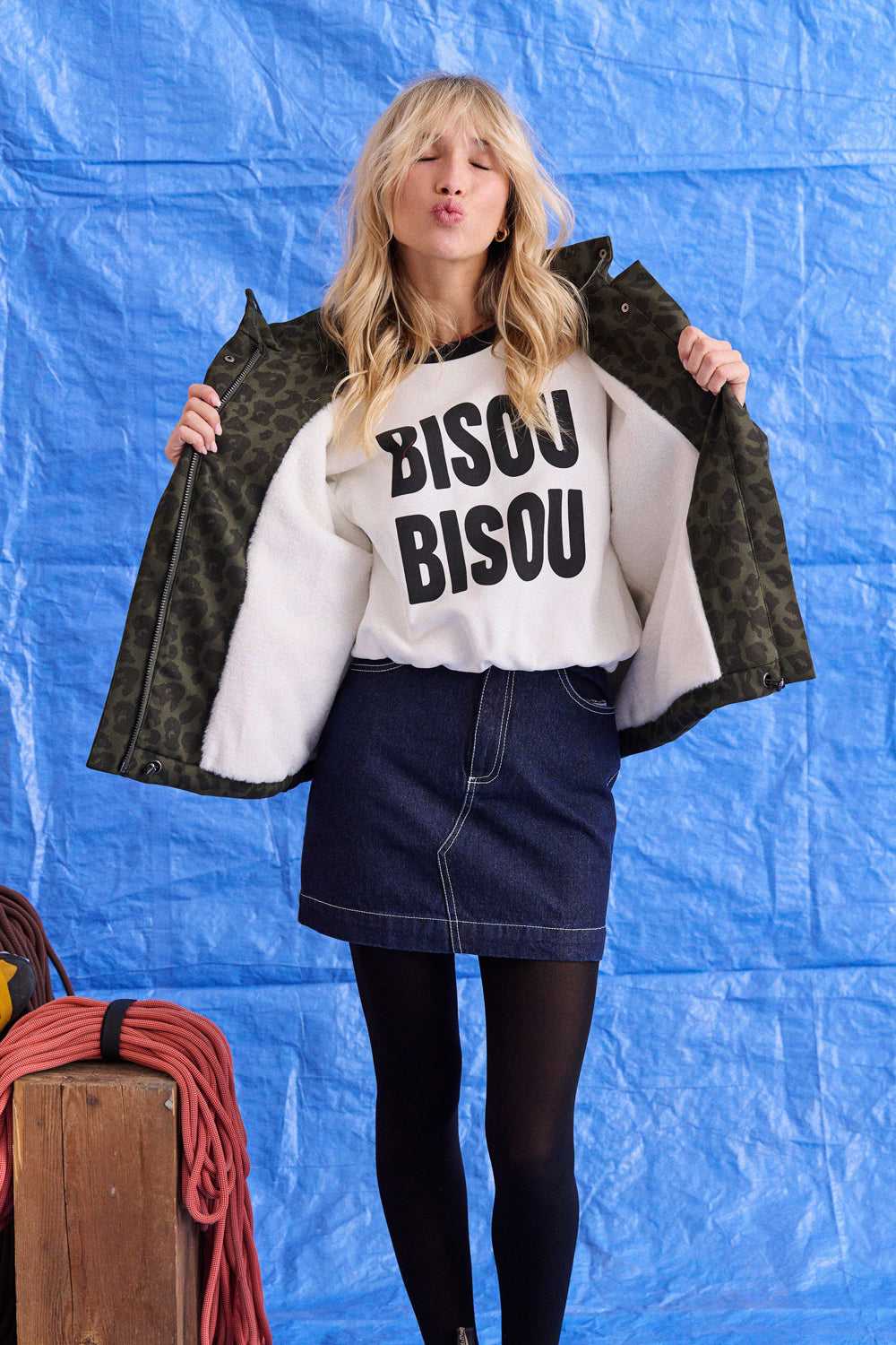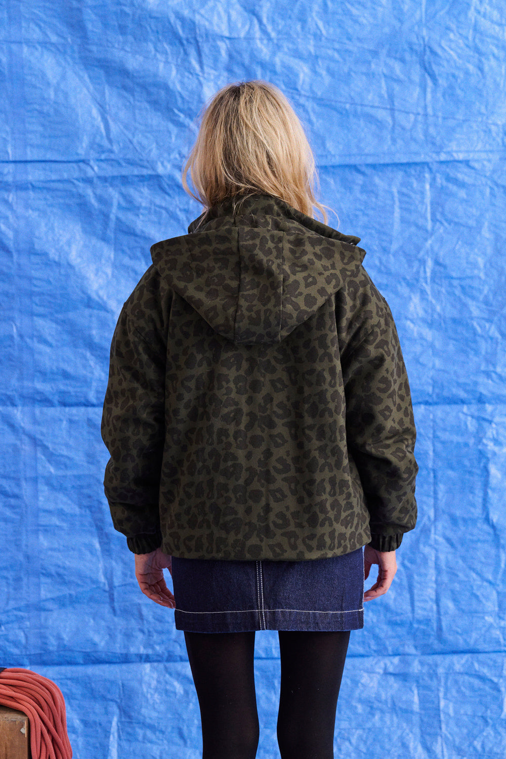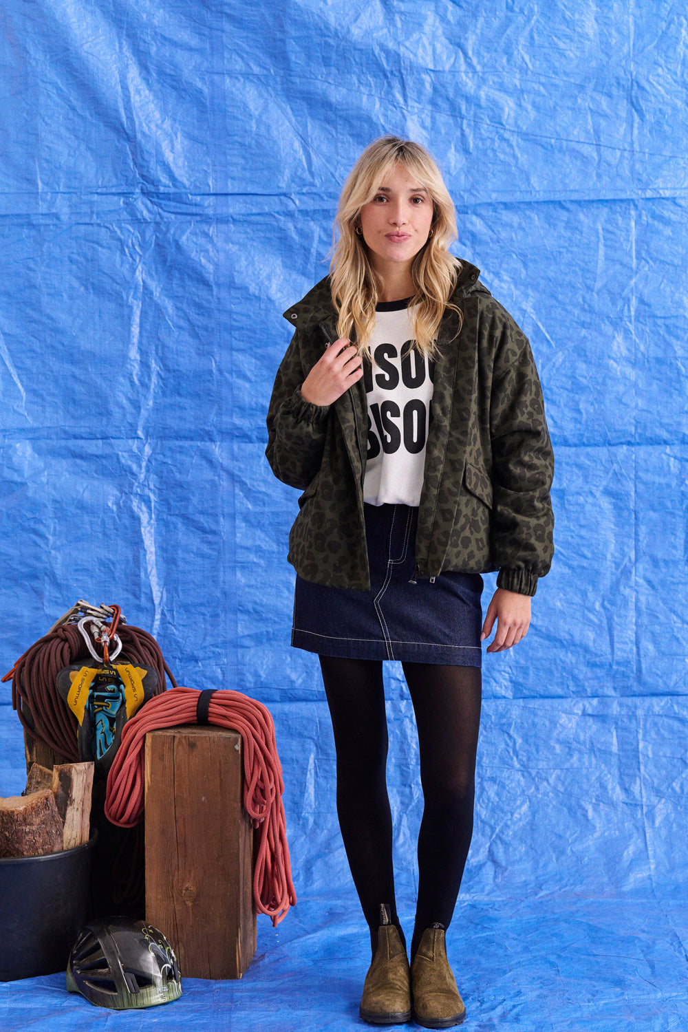 Coupe ample, capuche pratique et poches XXL : elle a tout du bon basique… sauf qu’elle est twistée par son imprimé léopard kaki et son intérieur tout doux. De quoi affronter les journées fraîches en restant stylée.