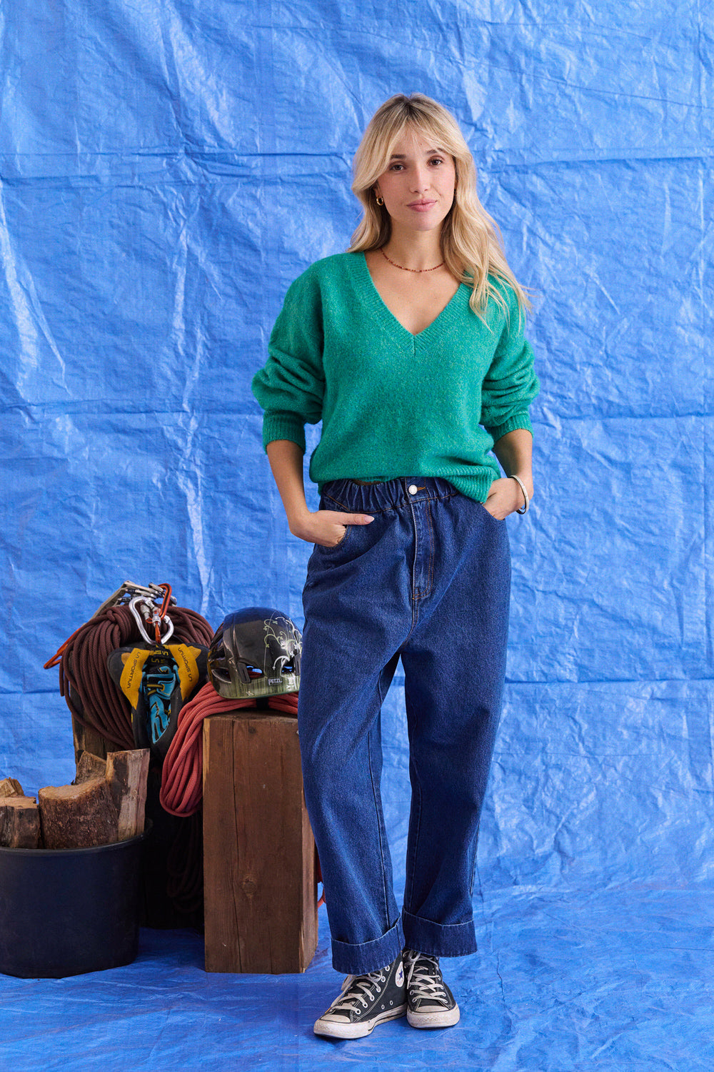 Sur les photos, Elena porte également le jean Prima.