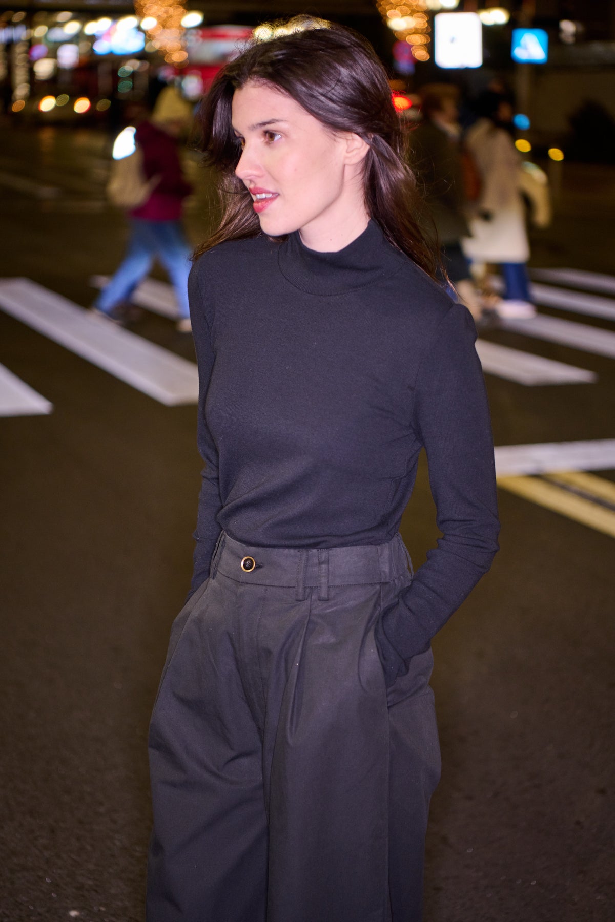 " C'est un basique de la garde-robe : un t-shirt côtelé à manches longues qui monte jusqu’au cou cette fois : parfait pour aller jogger au parc en hiver, ou encore à glisser sous un gilet sans manches pour le mettre en valeur. "