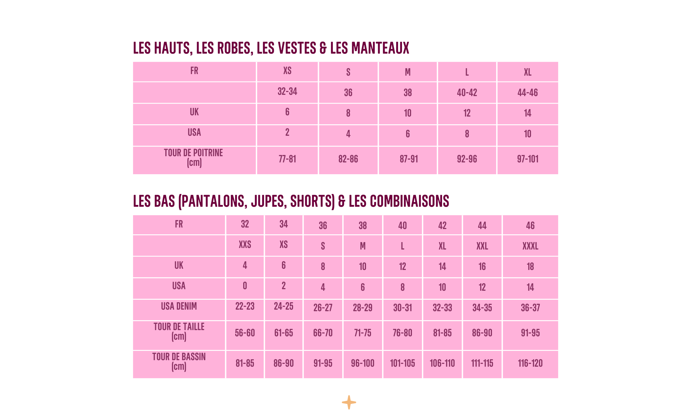 GUIDE DES TAILLES