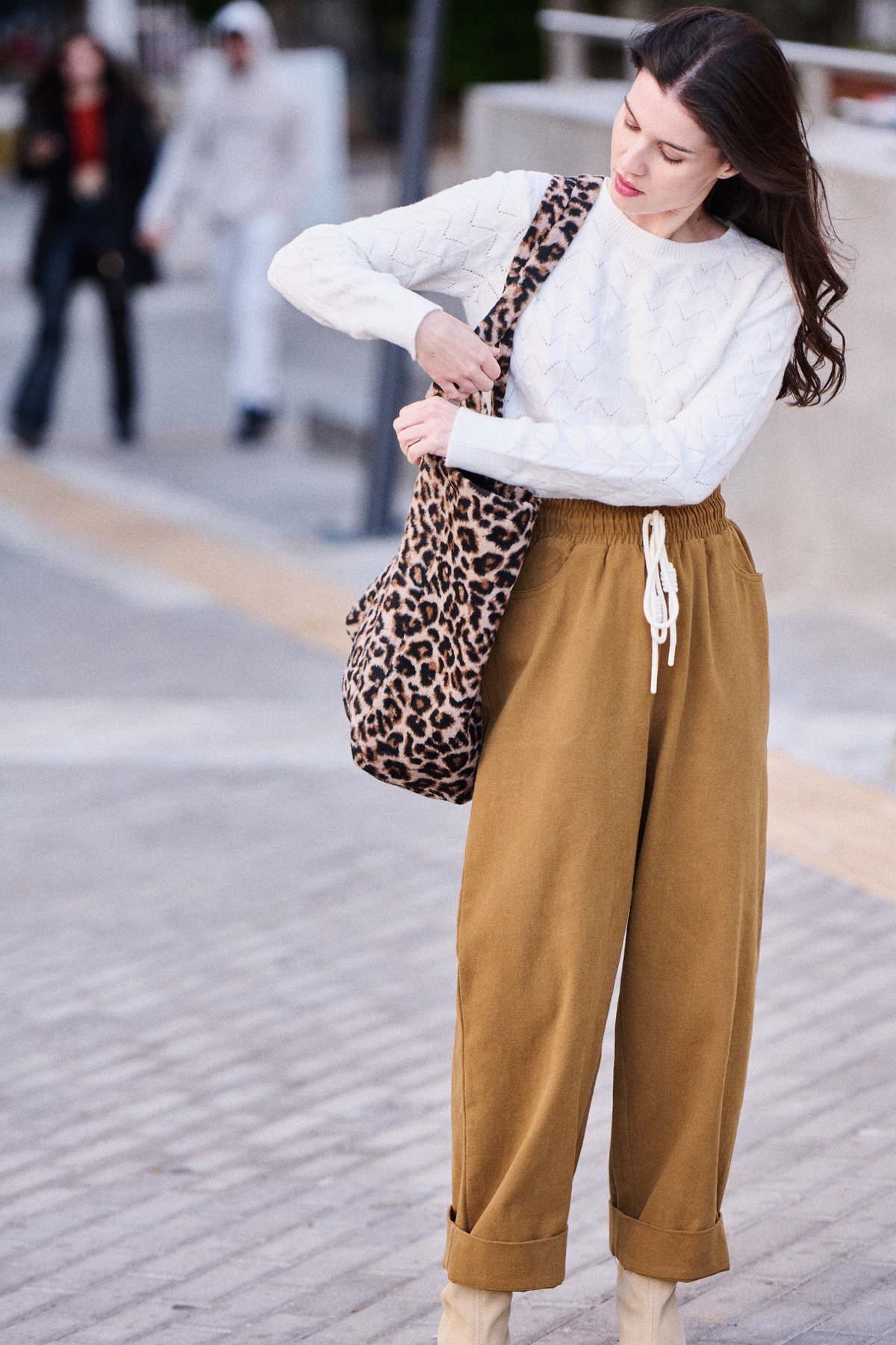 " Le sac Ava revient cette saison en version lainage imprimé Léopard. Vaste et pratique au quotidien, il offre un intérieur spacieux avec une poche intégrée pour garder vos essentiels à portée de main. Son cordon de serrage ajoute une touche moderne, faisant de lui l’allié parfait pour conjuguer style et fonctionnalité. "