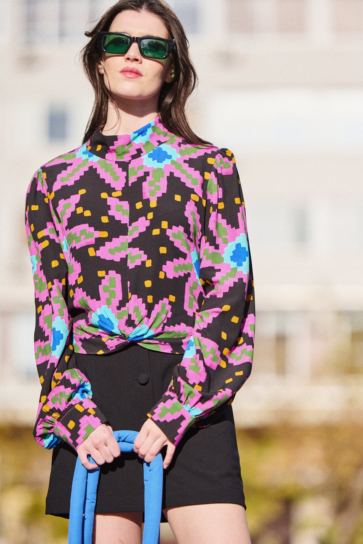 " La blouse Bala c'est l'élégance chic de son col montant et ses manches bouffantes qui rencontrent l'adn fort de son imprimé fleurs aux couleurs punchy. Impossible qu'elle vous laisse indifférents. "