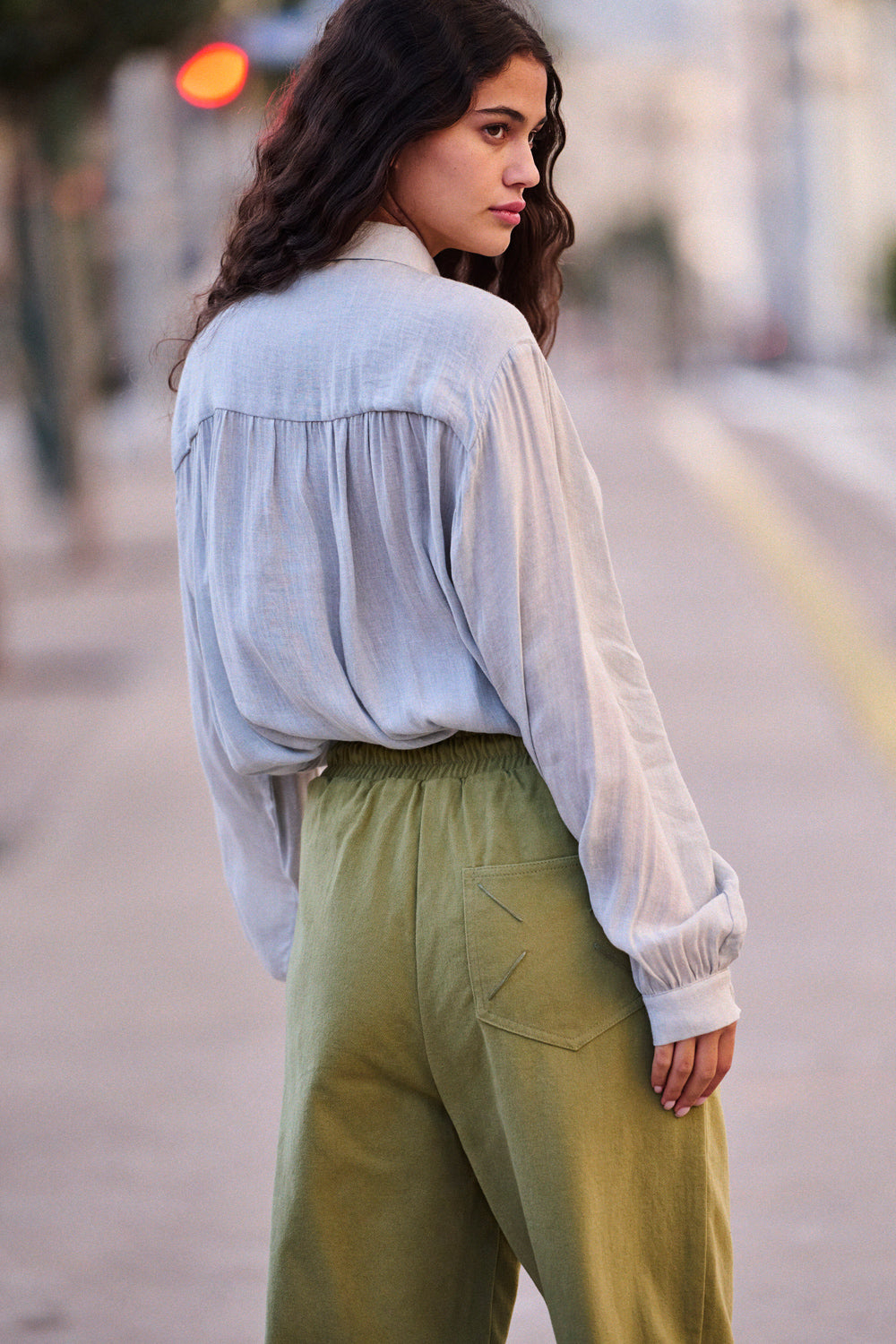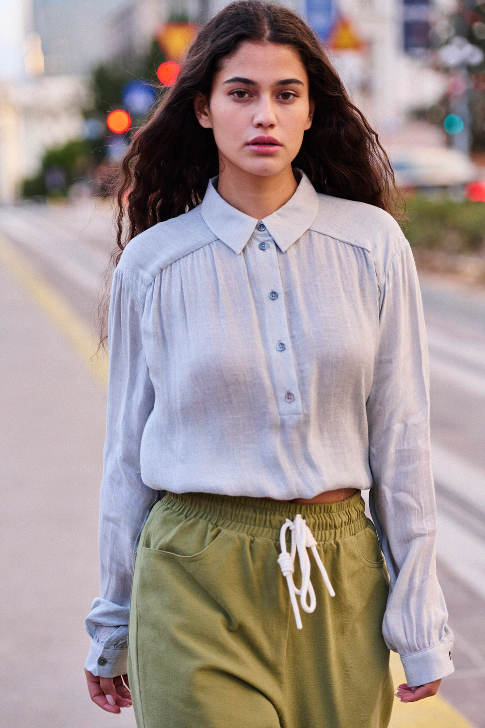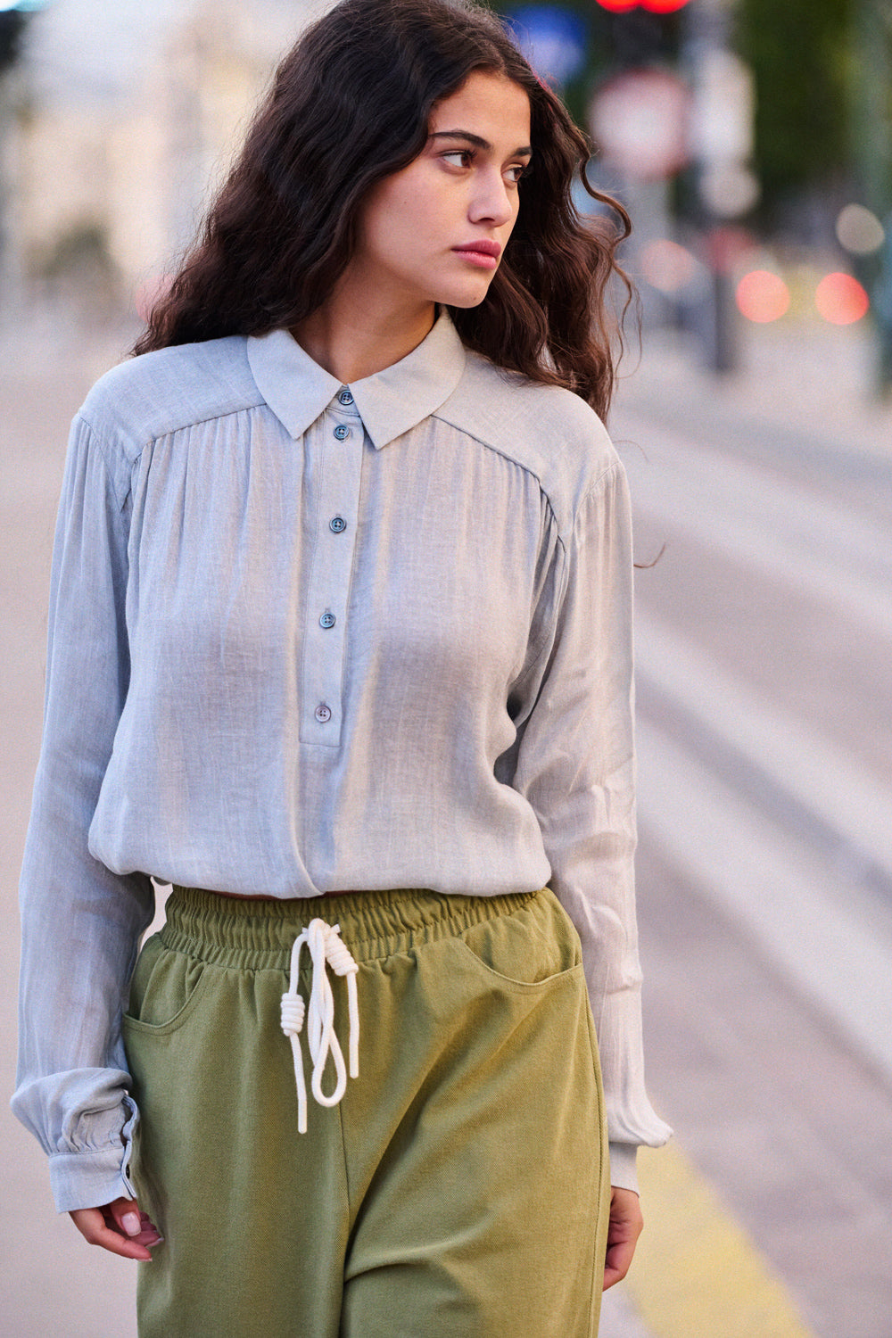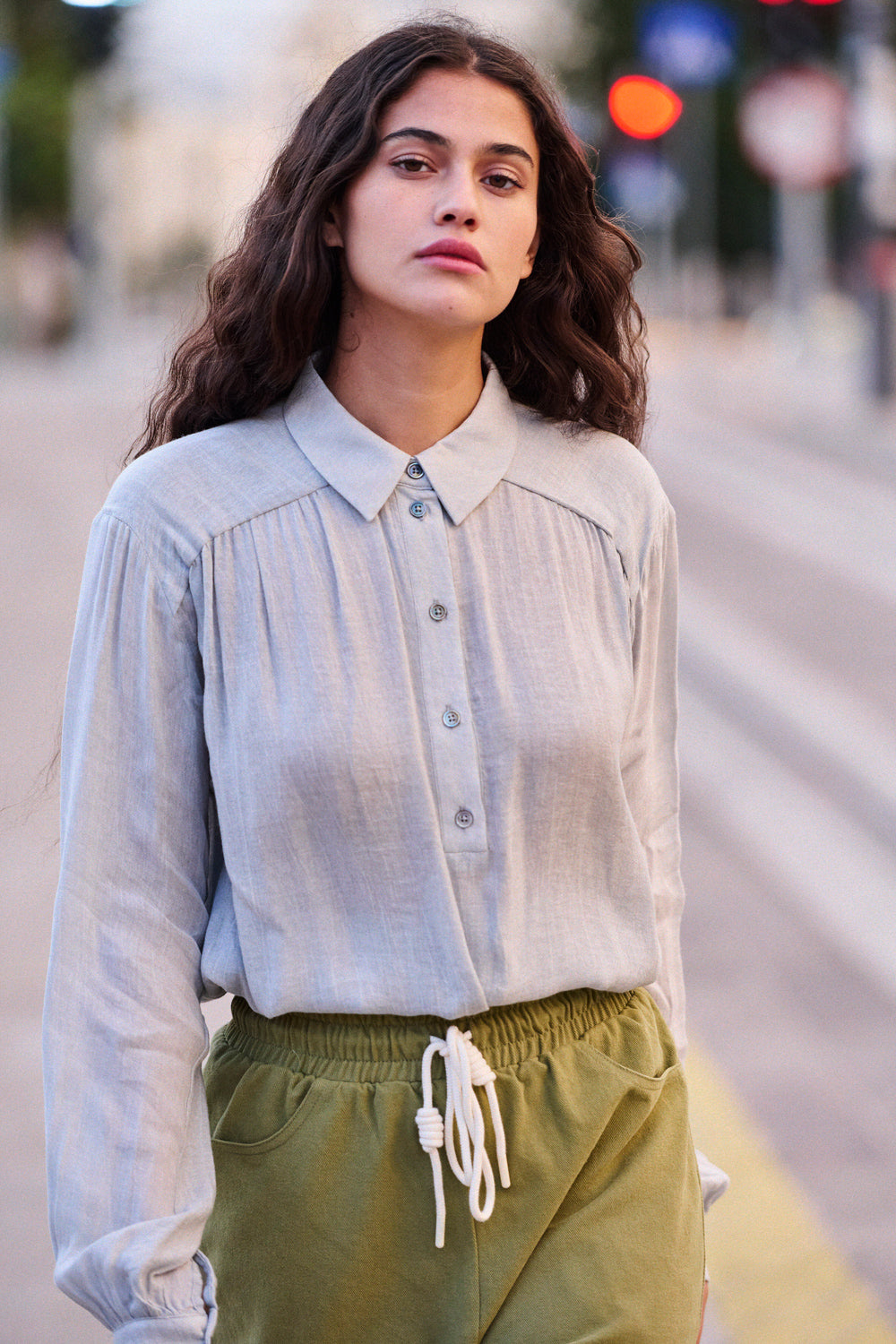 " Un peu de transparence et de légèreté pour la jolie chemise Cassy. On aime son côté blousant, à porter avec un pantalon taille haute. "