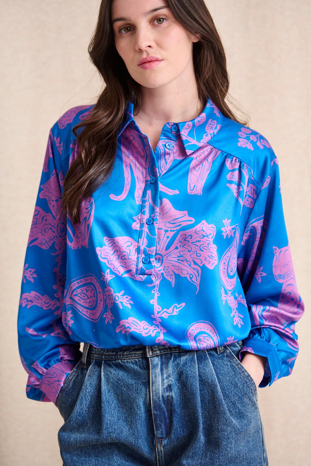 " Un peu de légèreté pour la jolie chemise Cassy imprimée. On aime ses couleurs flash, son fini satiné et son côté blousant. À porter avec un jean brut pour la laisser briller comme elle le mérite. "