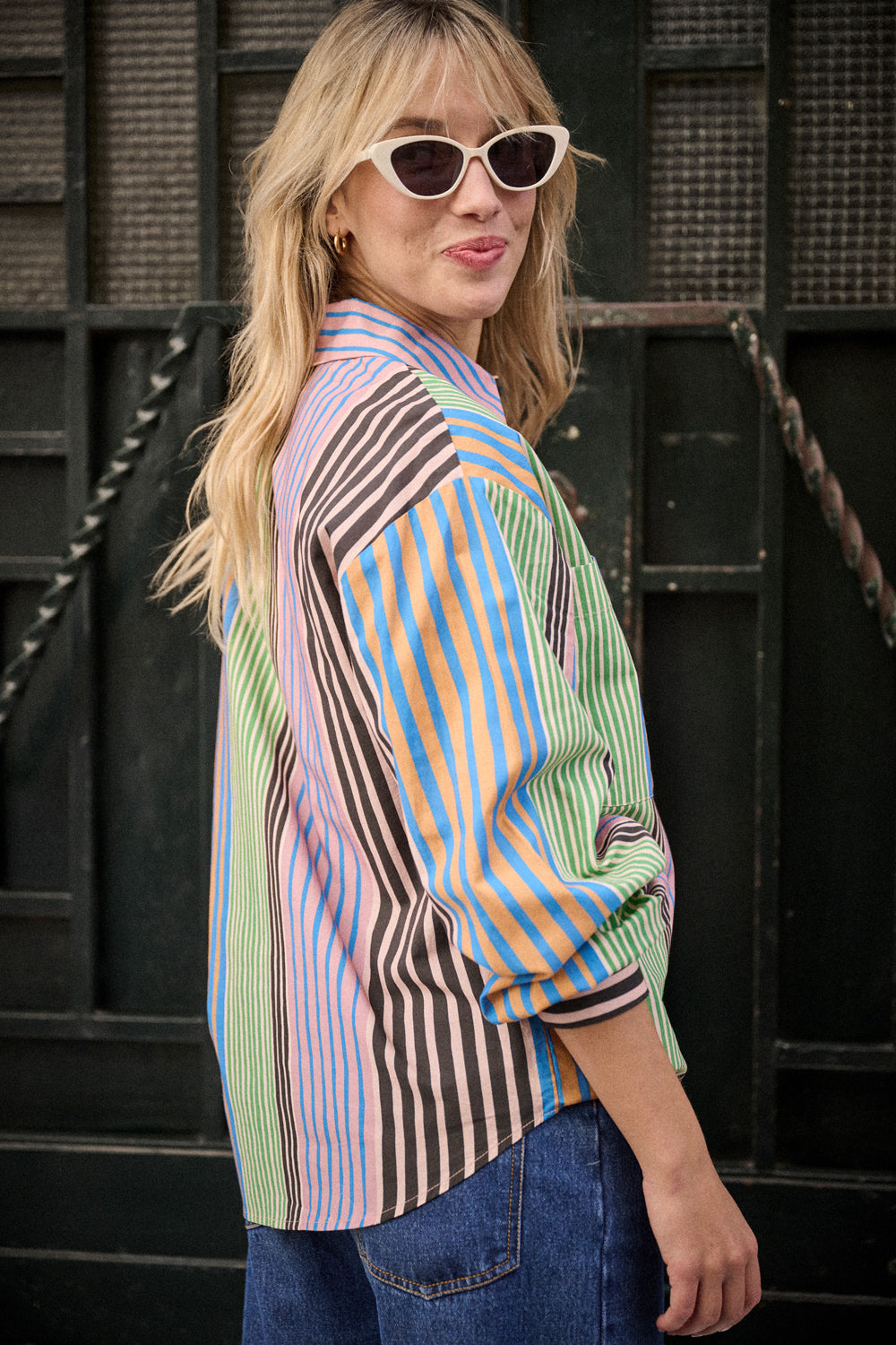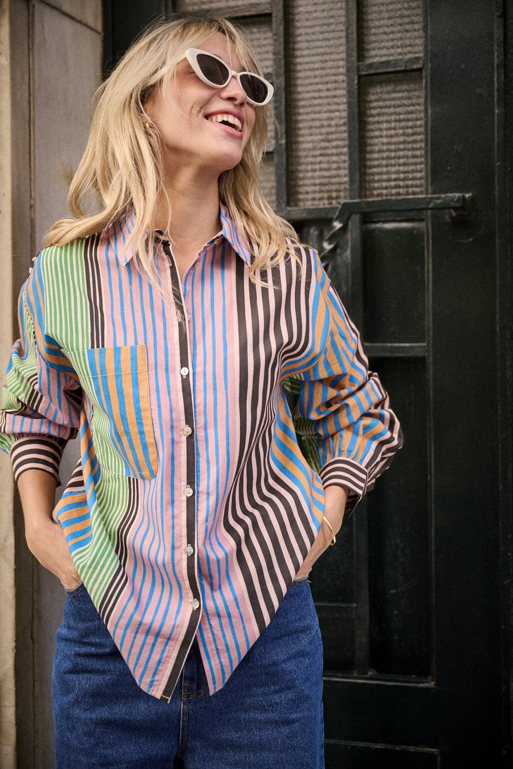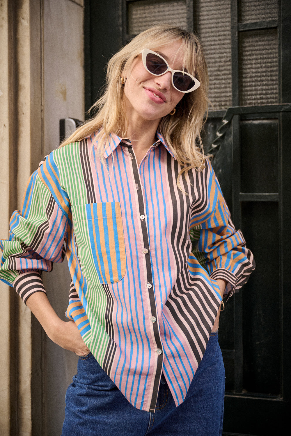 Une coupe droite et cool, à porter ouverte sur un t-shirt ou boutonnée comme une vraie chemise.