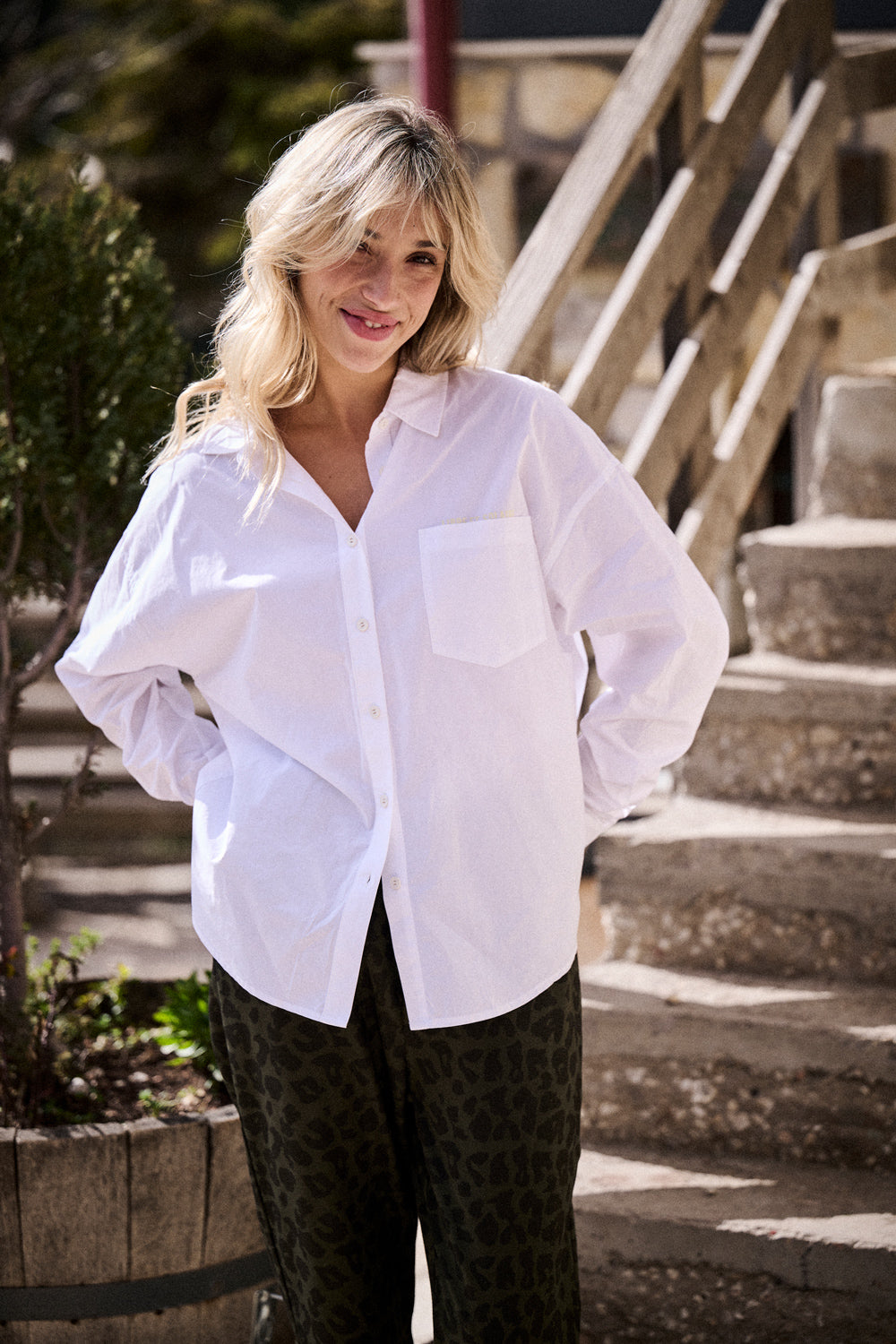 Coupe ample, col classique, tissu 100% coton : elle a cette dégaine fraîche et soignée qu’on adore.