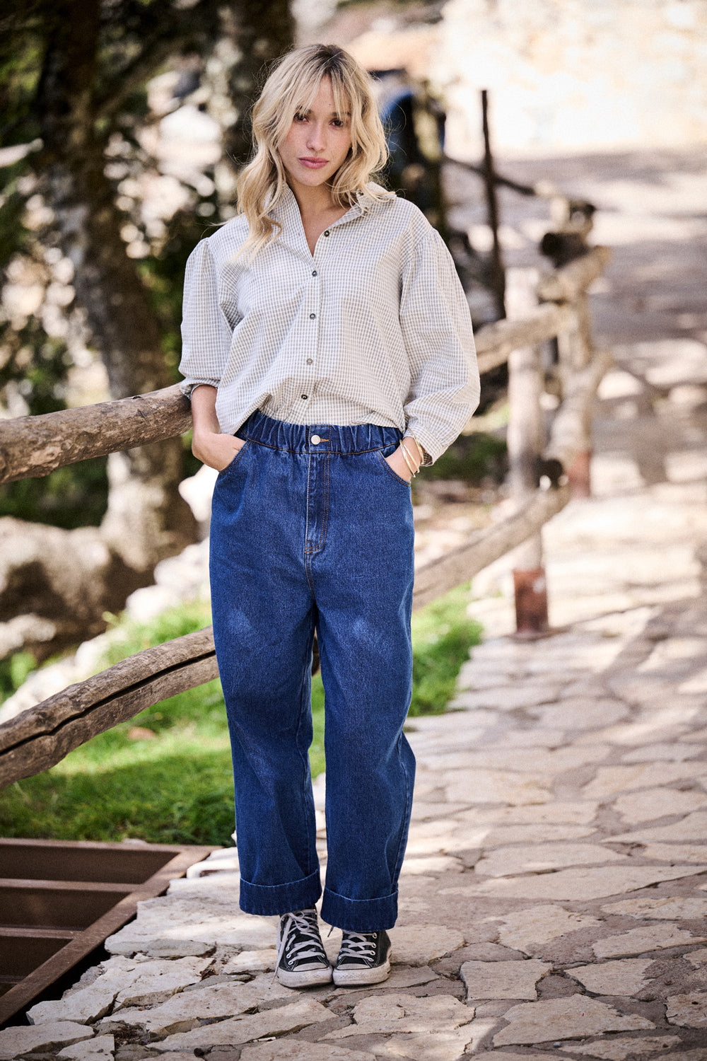 Cette chemise coche tout ce qu’on aime : une longueur parfaite, des manches ballon subtilement froncées, et une toile douce mais structurée, qui tient bien sans coller. Son petit carreau noir et blanc lui donne une allure encore plus intemporelle.
