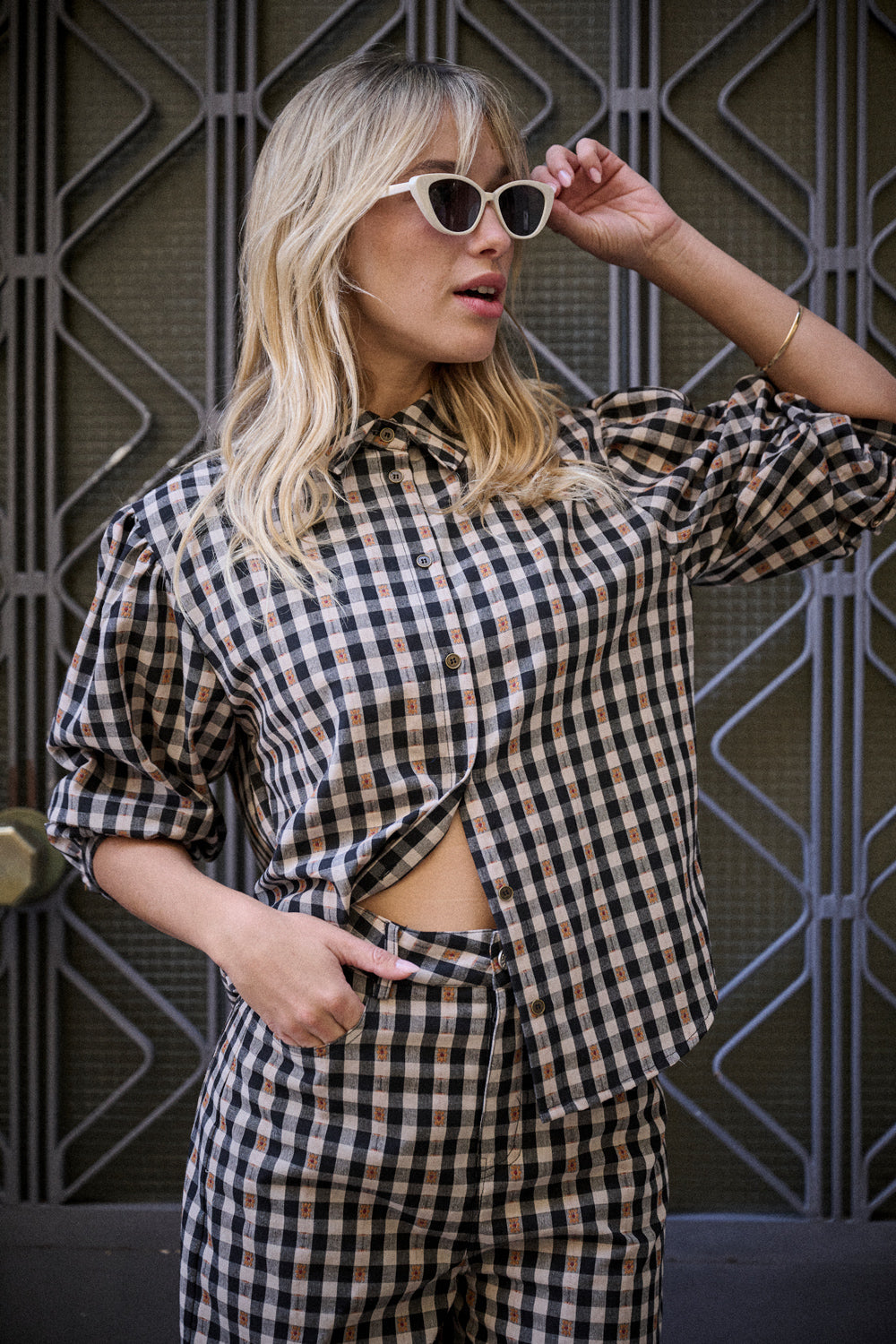 Une coupe nette, des volumes joliment dessinés, et ce motif carreaux qui donne le ton.
