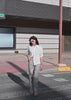 Une coupe ample et fluide, travaillée dans une matière brodée, qui laisse subtilement apparaître la peau. À l’avant, une chemise facile, presque classique. À l’arrière, un dos boutonné qui s’ouvre selon le mouvement et apporte une touche inattendue à la silhouette.