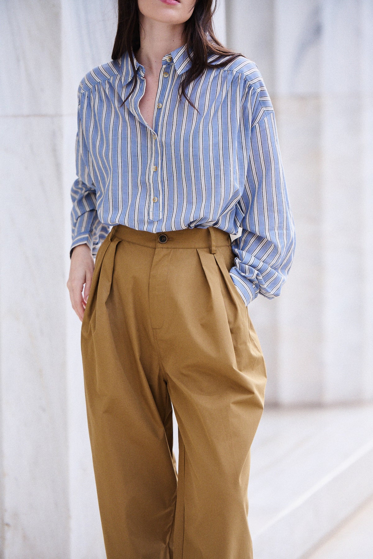 " On adore la rayure de cette nouvelle chemise Cilo. Elle a un côté workwear mais qui sait s'adapte à toutes les situations. Elle est parfaite avec un pantalon, un jean ou une jupe. "