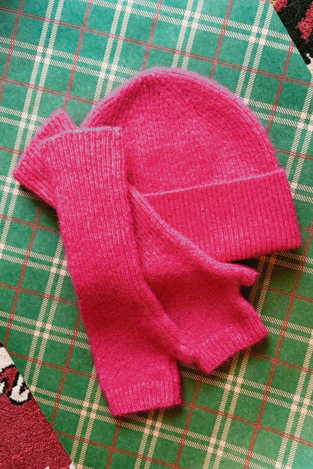 Un duo pensé pour réchauffer sans jamais alourdir le style : le bonnet, avec sa maille douce et son large revers qui encadre le visage, s’enfile sans réfléchir et donne tout de suite une allure cool et assurée. Les mitaines, elles, gardent les mains au chaud tout en laissant la liberté de mouvement qu’on adore, pour attraper un café, envoyer un message ou filer en vélo.
