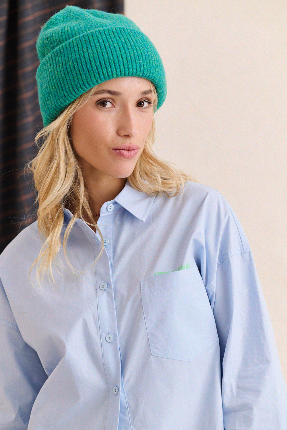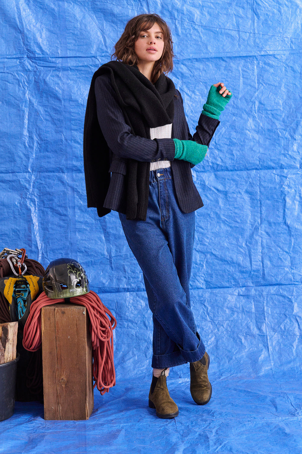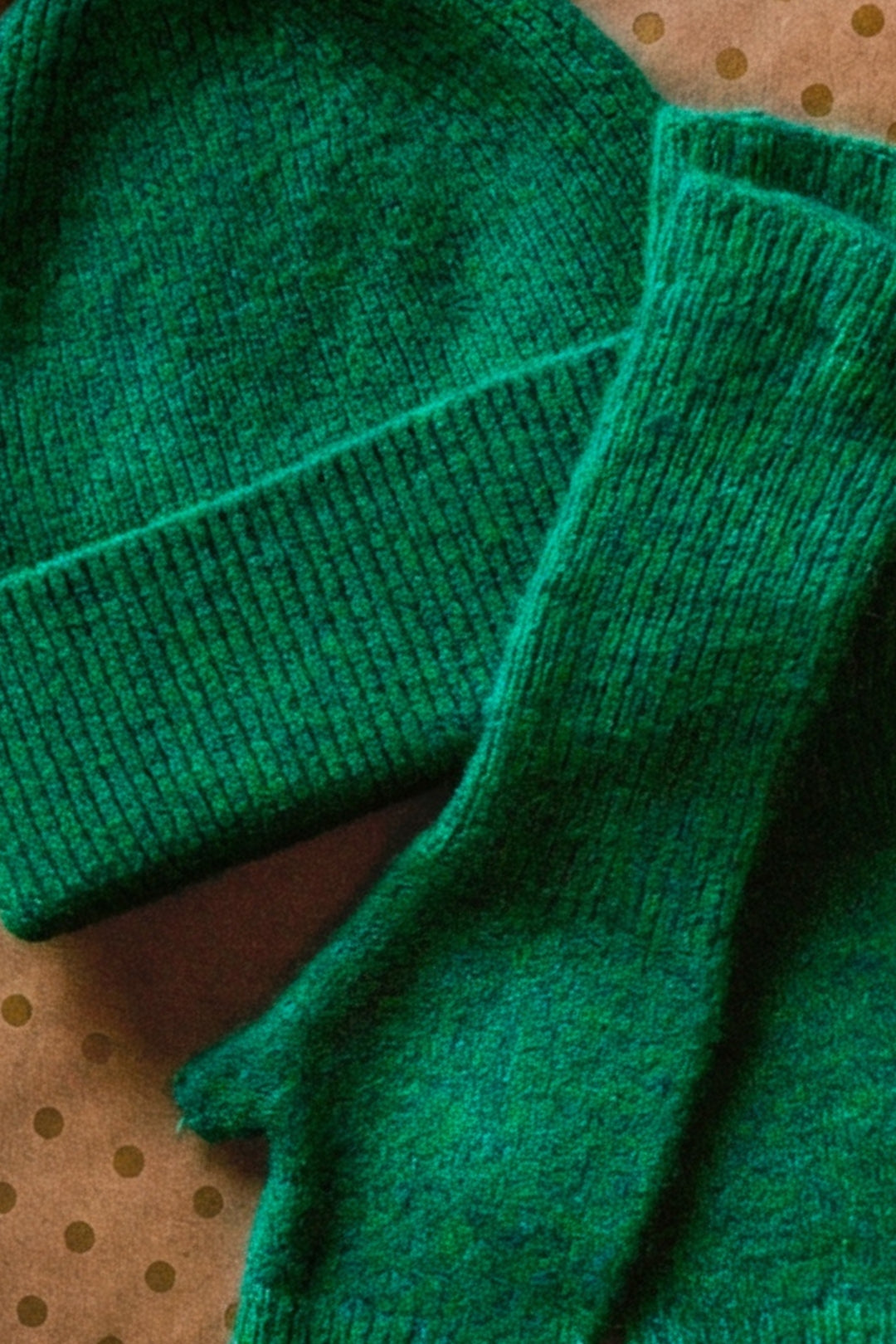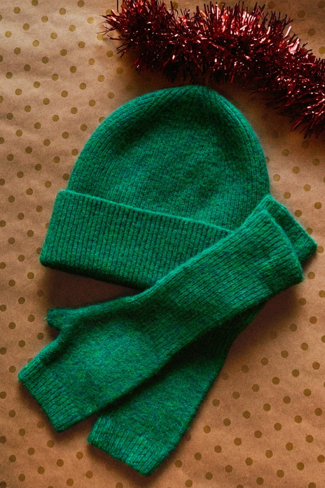 Un duo pensé pour réchauffer sans jamais alourdir le style : le bonnet, avec sa maille douce et son large revers qui encadre le visage, s’enfile sans réfléchir et donne tout de suite une allure cool et assurée. Les mitaines, elles, gardent les mains au chaud tout en laissant la liberté de mouvement qu’on adore, pour attraper un café, envoyer un message ou filer en vélo.