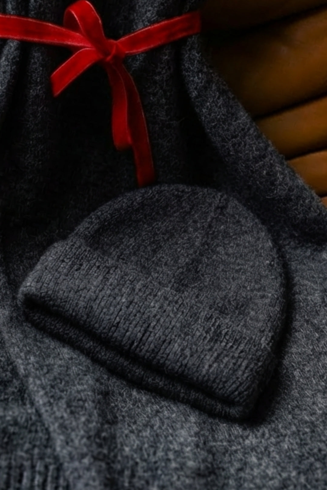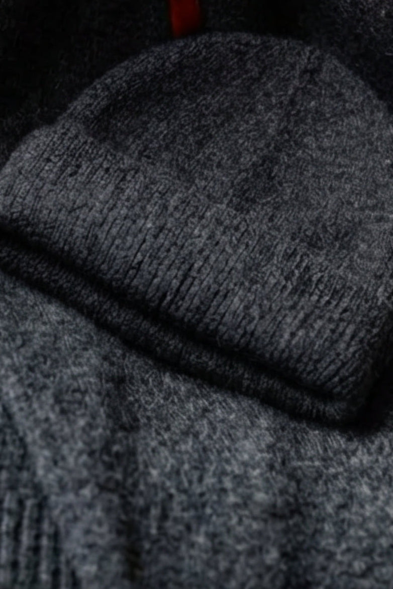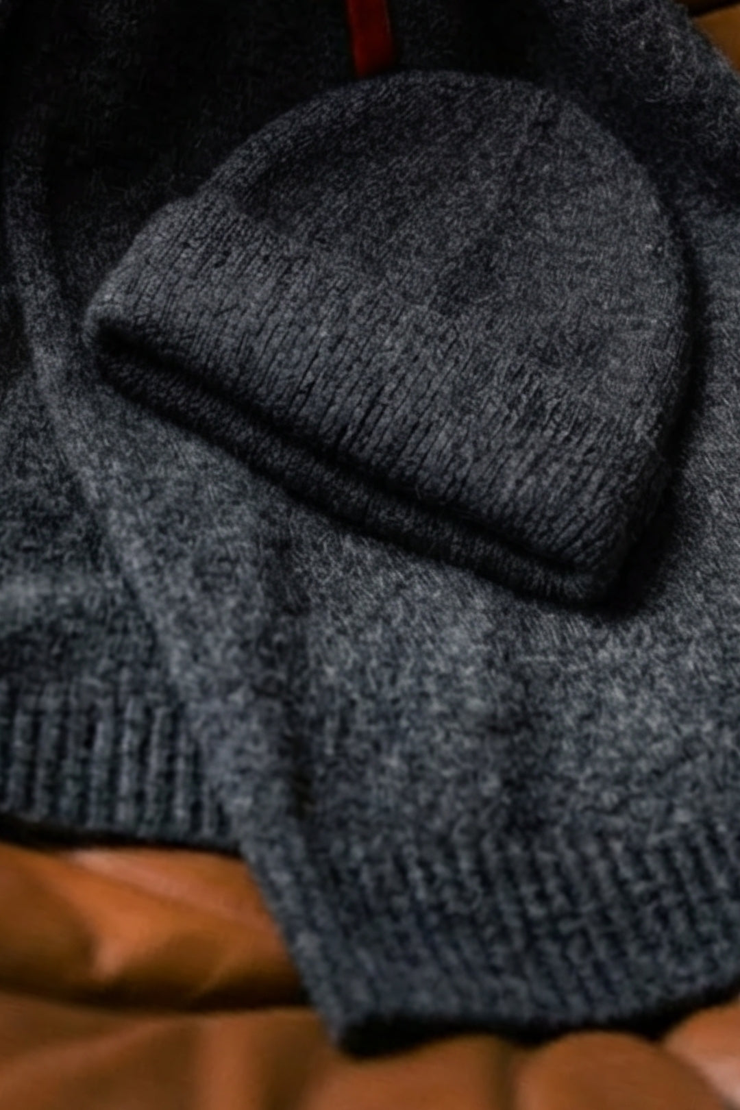 Le bonnet, lui, réchauffe instantanément avec sa maille moelleuse et son large revers qui encadre le visage. Un geste simple, une dégaine cool, et le look est lancé.