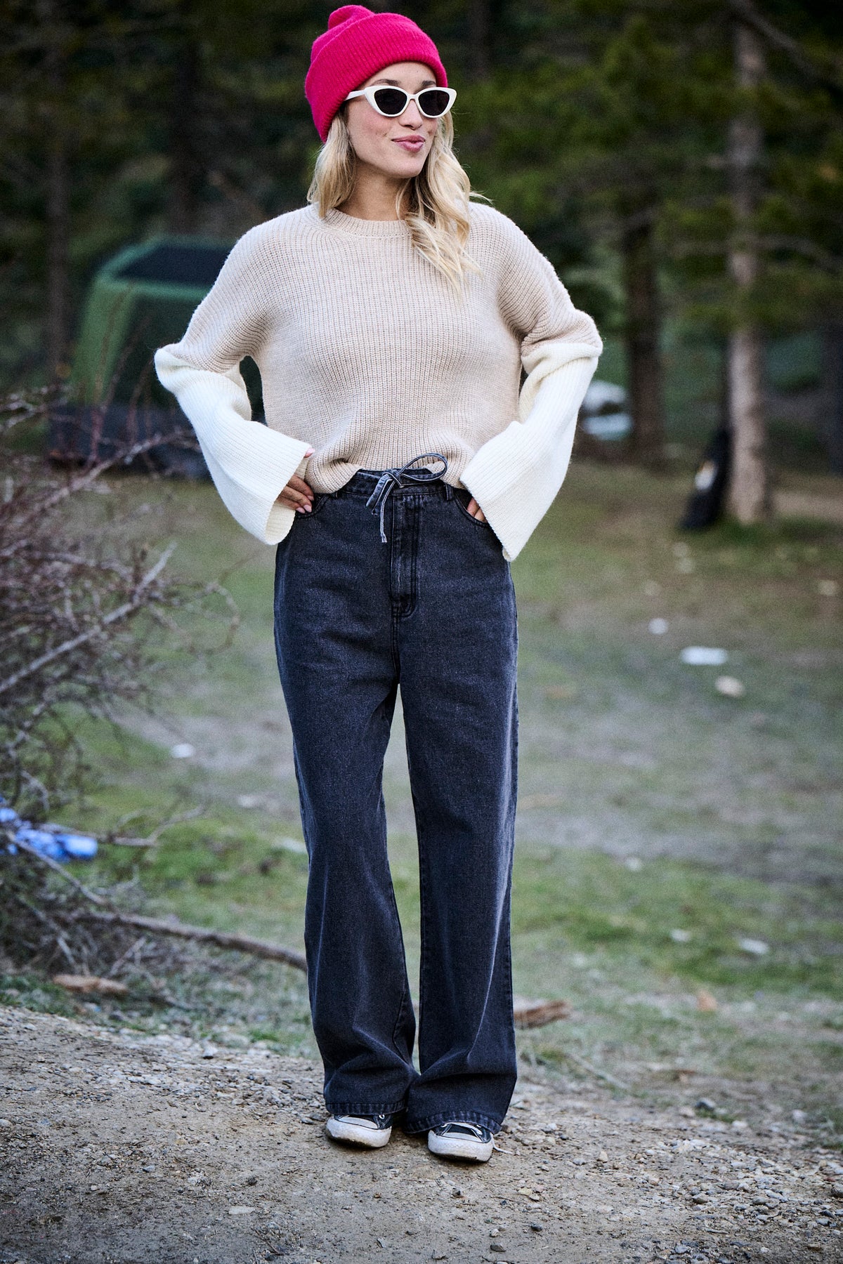 Le bonnet, lui, réchauffe instantanément avec sa maille moelleuse et son large revers qui encadre le visage. Un geste simple, une dégaine cool, et le look est lancé.