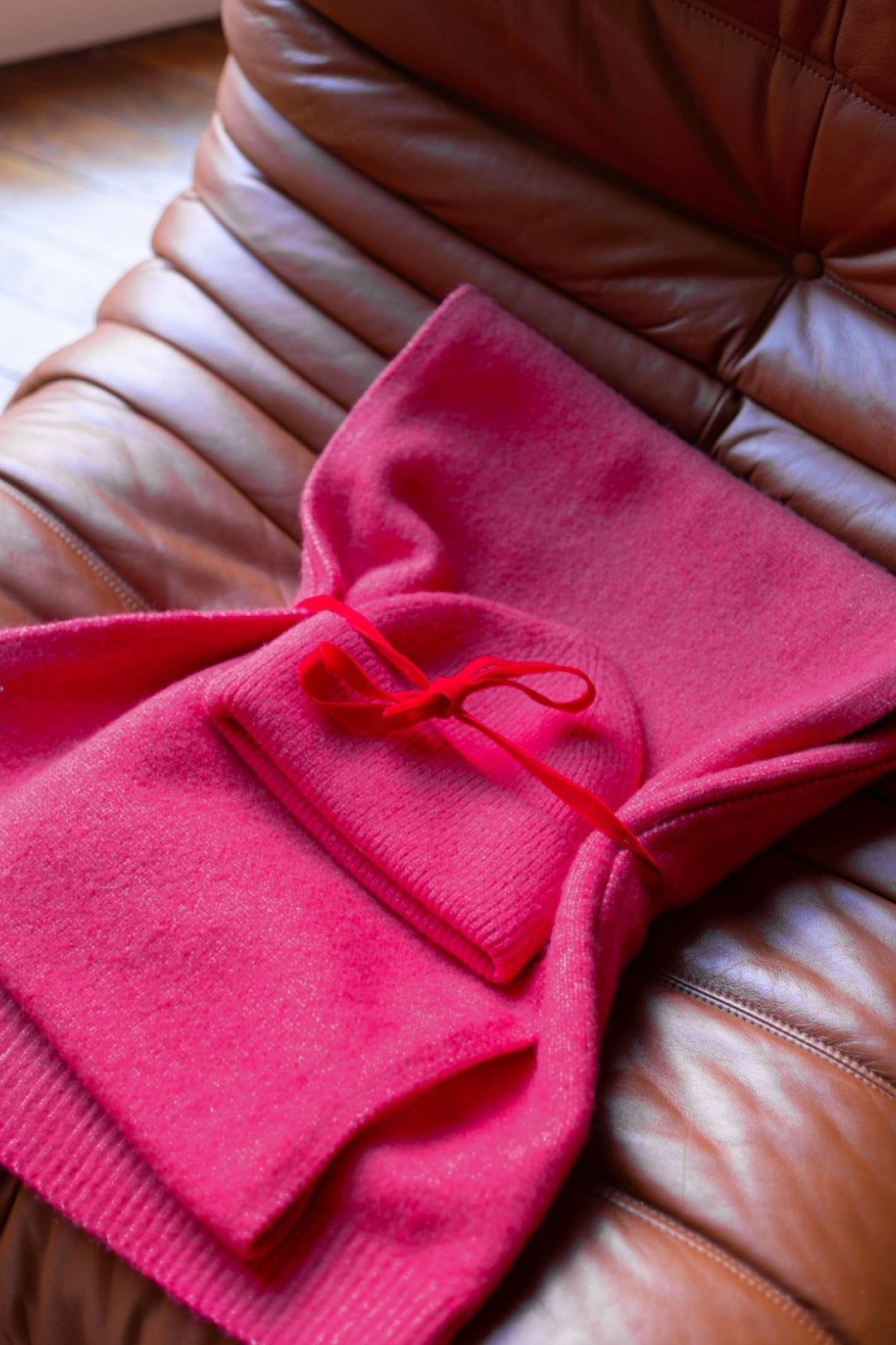 Deux essentiels à attraper en sortant, aussi doux qu’indispensables : l’écharpe, avec sa maille généreuse et souple, qu’on enroule sans y penser et qui apporte la juste dose de chaleur. Portée autour du cou ou posée sur les épaules, elle ajoute tout de suite ce mix de confort et d’allure qu’on aime quand les températures chutent.