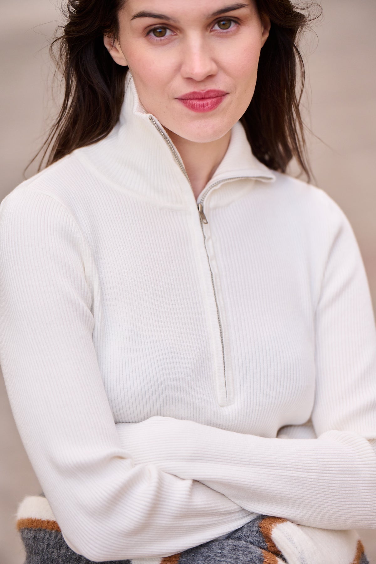 " Le petit pull côtelé Meghan est un intemporel à avoir dans son armoire en toute saison. Il s'adapte à toutes les tenues. Son côté camionneur ajoute une touche mode à ce petit basique. "
