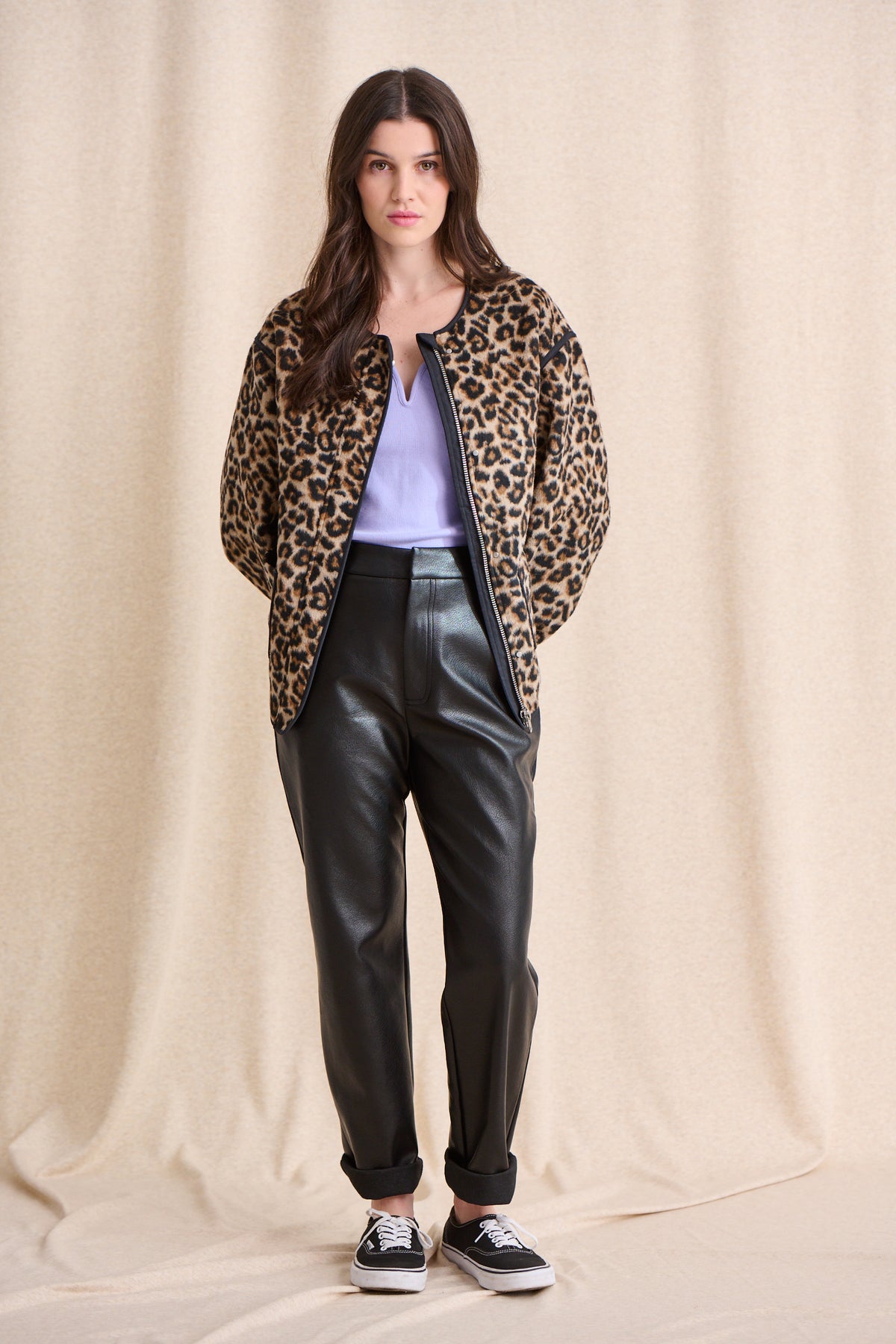 " Véritable incontournable de la garde-robe, le pantalon en simili-cuir Pam se décline en coupe droite cette saison, pour être dégainé en toute occasion : au bureau, il peut se faire formel, en soirée avec les amies il se fera plus festif... à vous de jouer ! "