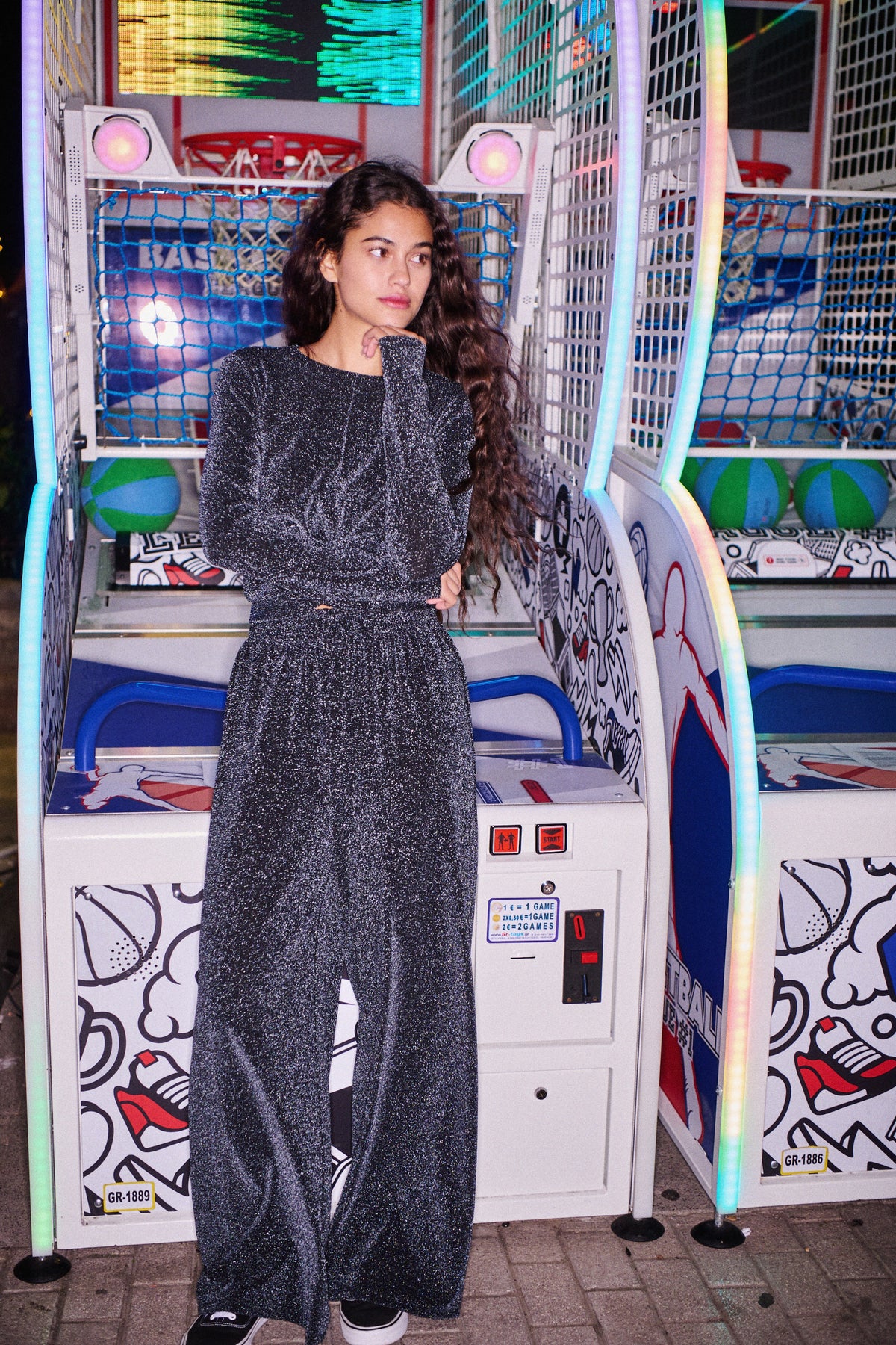 " Pour un total look reine du disco, assortissez-le pantalon Pamar avec le t-shirt en lurex Tal. "