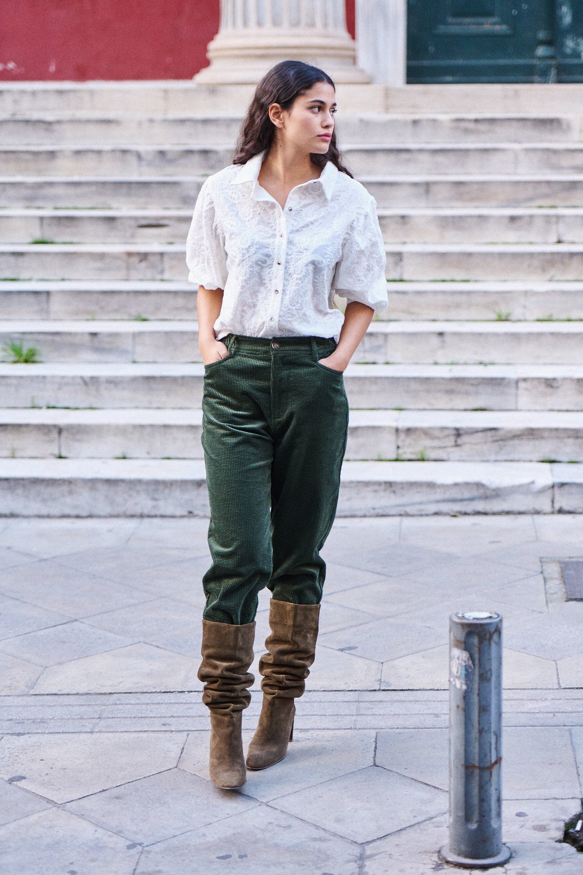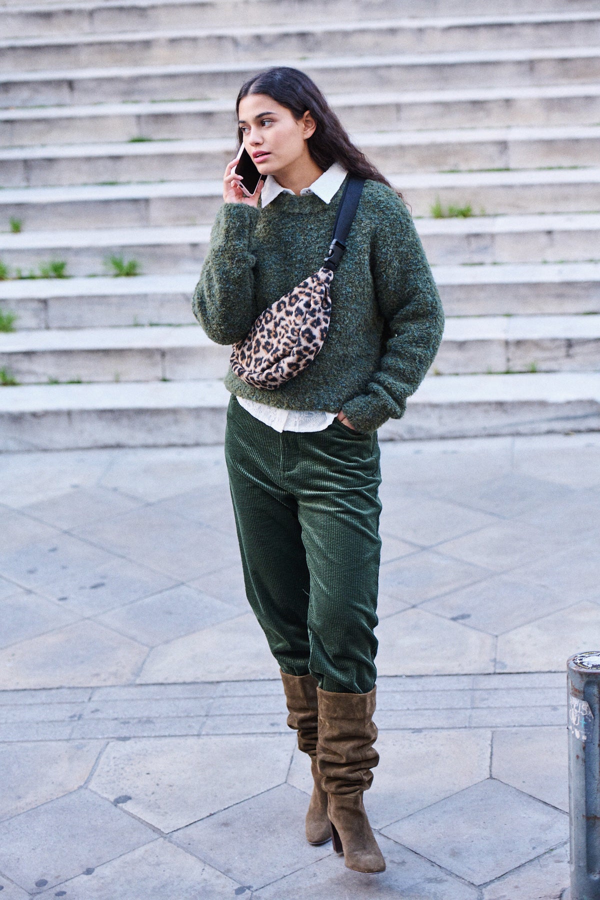 " Coupe mom' et velours côtelé tendance, il s'accorde avec absolument tout. Notre petit conseil : associez-le avec une pièce forte en haut, comme le sweat Nola à message. "