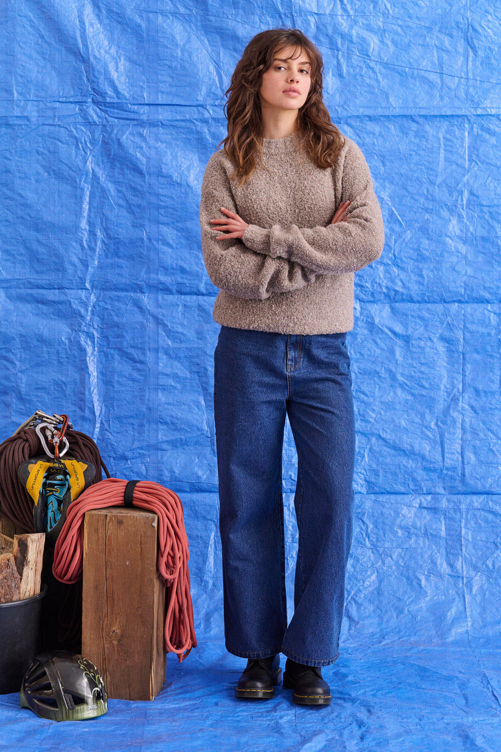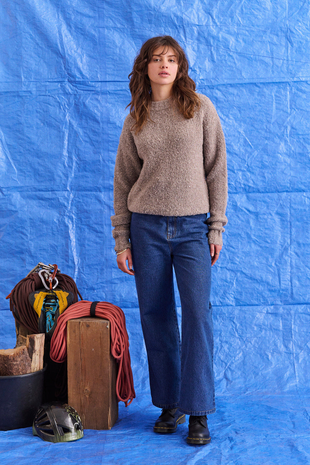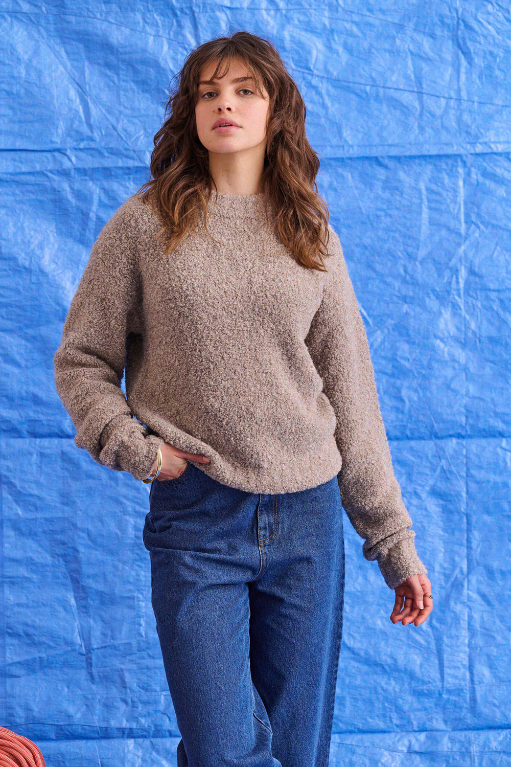 Avec sa maille bouclée, il a ce relief irrégulier qui le rend vivant et hyper agréable au toucher. Sa coupe droite, son col rond et ses manches amples en font un essentiel facile, qui se porte sur un jean ou une jupe sans se poser de question.
