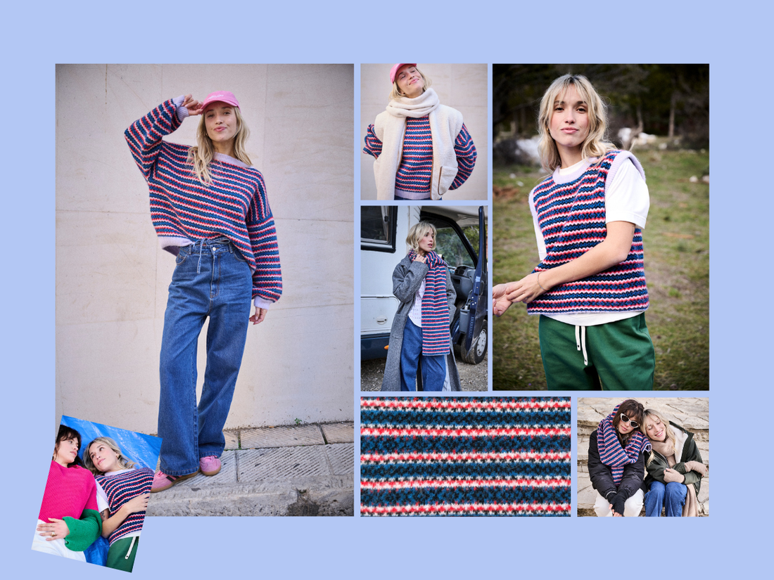 Un dessin de maille vintage, dénichée pour son graphisme fort, revisité dans notre œil Laure+Max. Laure et Lulu en réinventent chaque détail : la douceur du fil, son épaisseur, sa composition, sa jauge, recolorisent le tout… avant de décider sur quelles pièces cette trame prendra vie. De là naît une maille exclusive, vibrante et graphique, qui insuffle de l’énergie au quotidien. Un pull oversize au style affirmé, un sans-manche au tracé vibrant, une écharpe doudou qu’on garde tout contre soi. La Maille Vintage devient un terrain de jeu, entre héritage et modernité, pensée pour durer et accompagner toutes vos aventures hivernales.