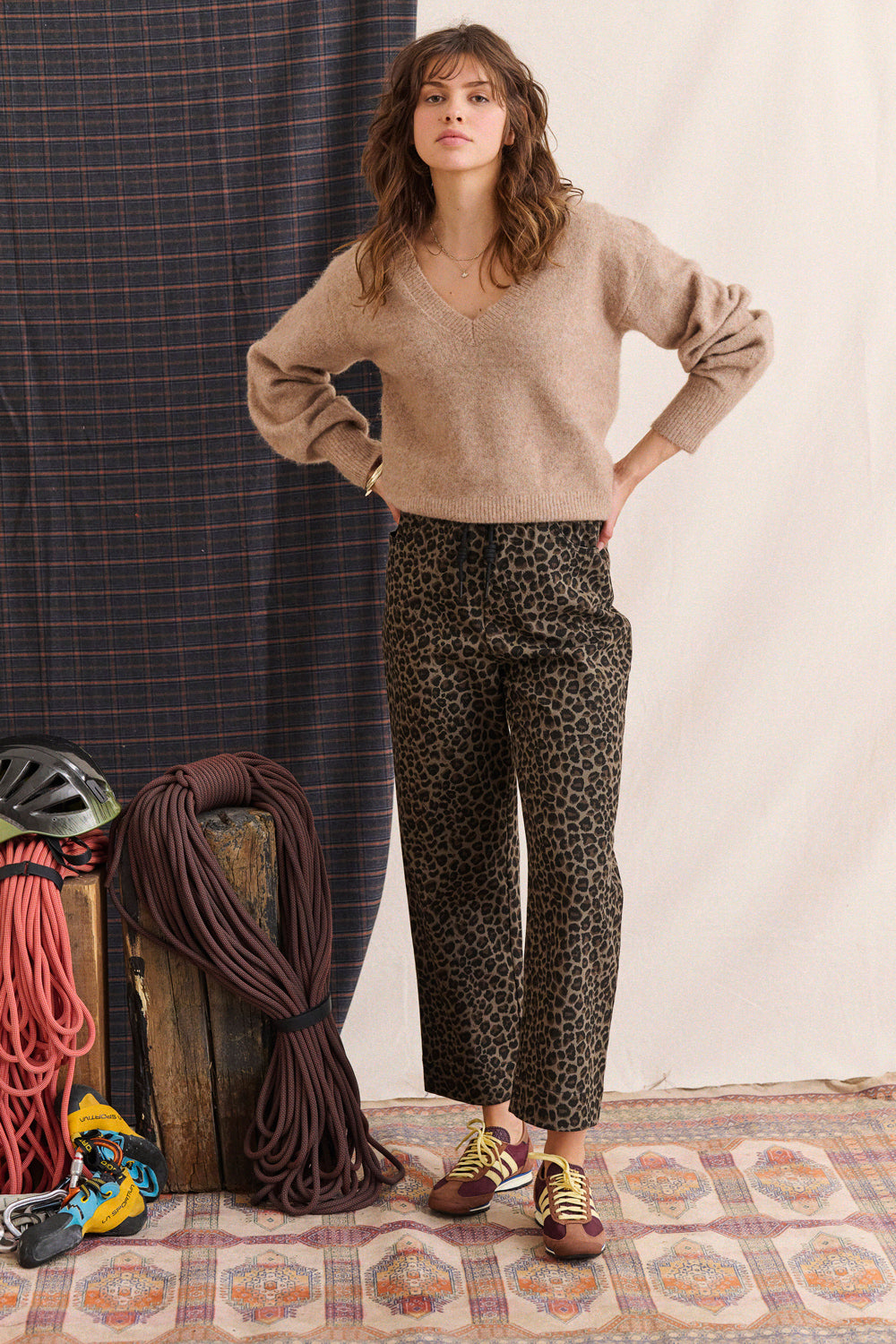 Sur les photos, Elena porte également le pantalon léopard Primo.