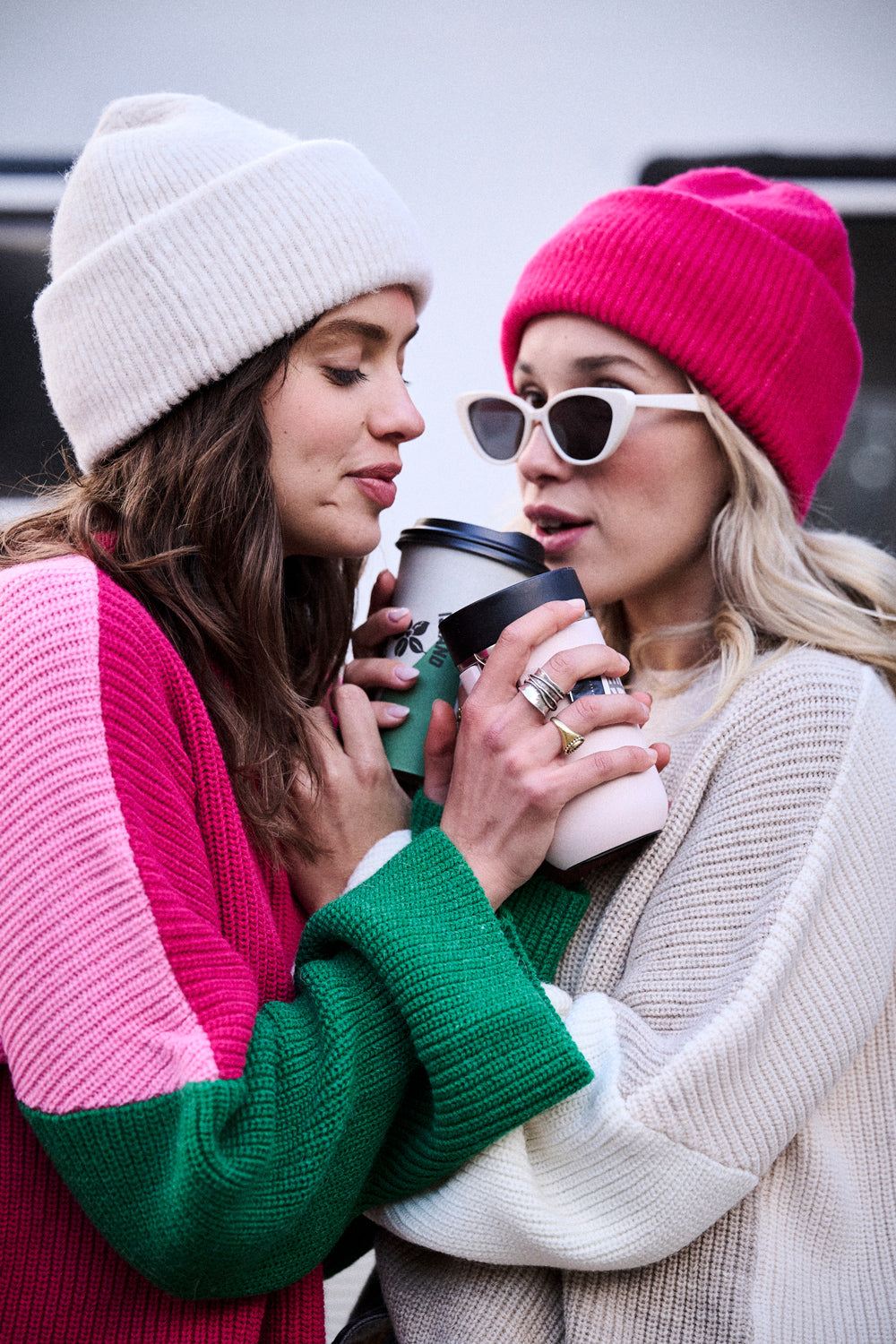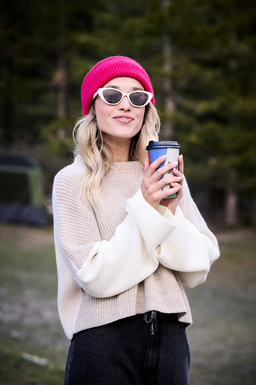 Laure a choisi ce dégradé de beiges pour créer un pull neutre et lumineux, facile à glisser dans tous les looks.