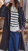 Ce pull reprend l’esprit marinière, mais en version maille douce et manches amples. Le contraste des rayures bleu marine sur fond écru lui donne ce côté graphique qui marche aussi bien sur un jean brut que sur une jupe légère.