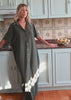 Le col chemise apporte ce petit contraste qu’on aime chez LAURE+MAX : un côté structuré en haut, et en dessous tout devient mouvement. Les manches donnent de l’allure, la longueur allonge, et les boutons sur toute la hauteur permettent de jouer. Fermée, elle est nette. Légèrement ouverte, elle devient plus sensuelle, plus solaire.
