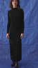 Son col montant et sa coupe près du corps soulignent la féminité. Le drapé à la taille apporte une touche de mouvement et sa grande fente dévoile subtilement la jambe. Facile à porter avec des bottes, un perfecto ou un long manteau, c’est la pièce qui fait se sentir forte et libre, sans effort.