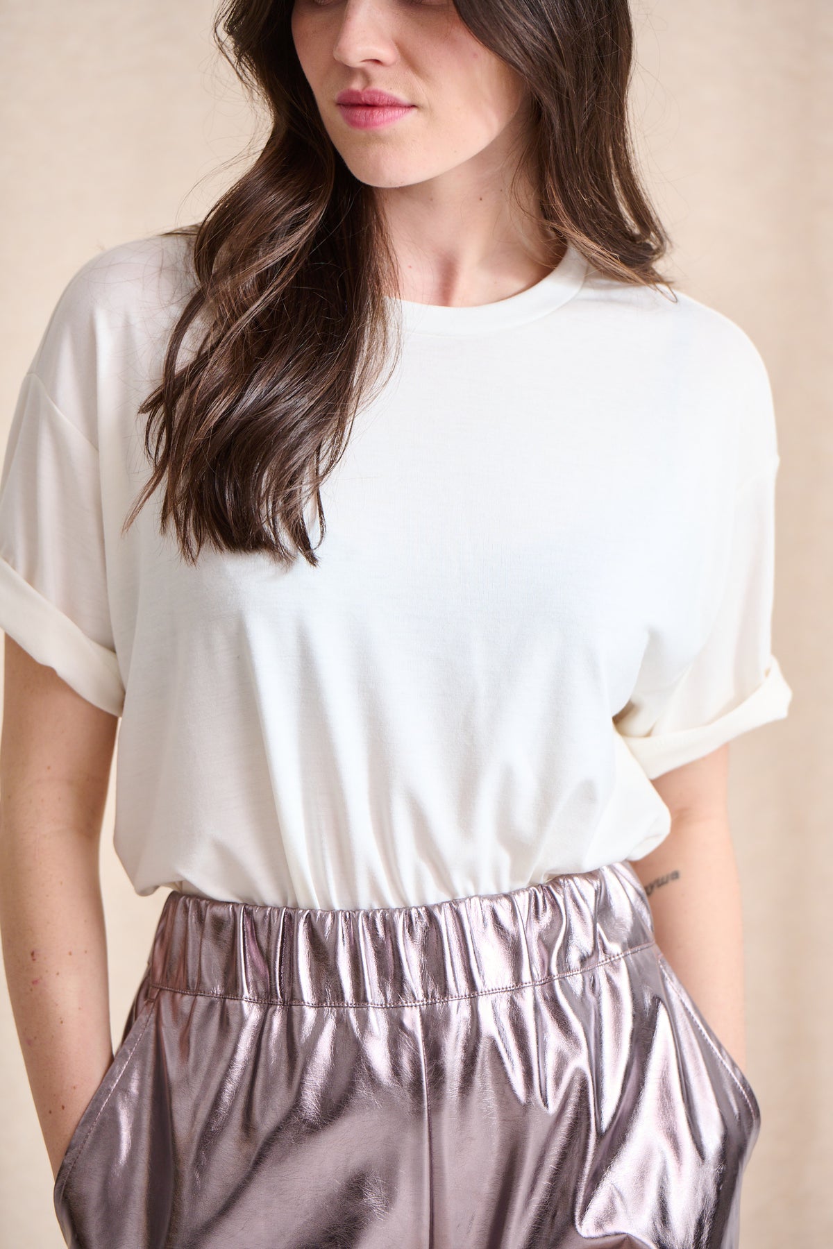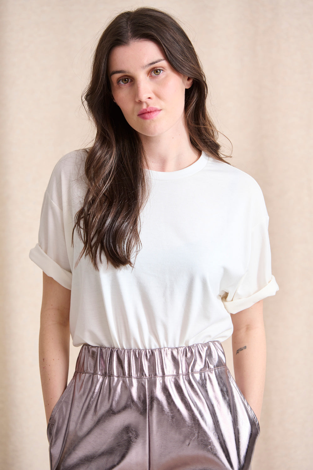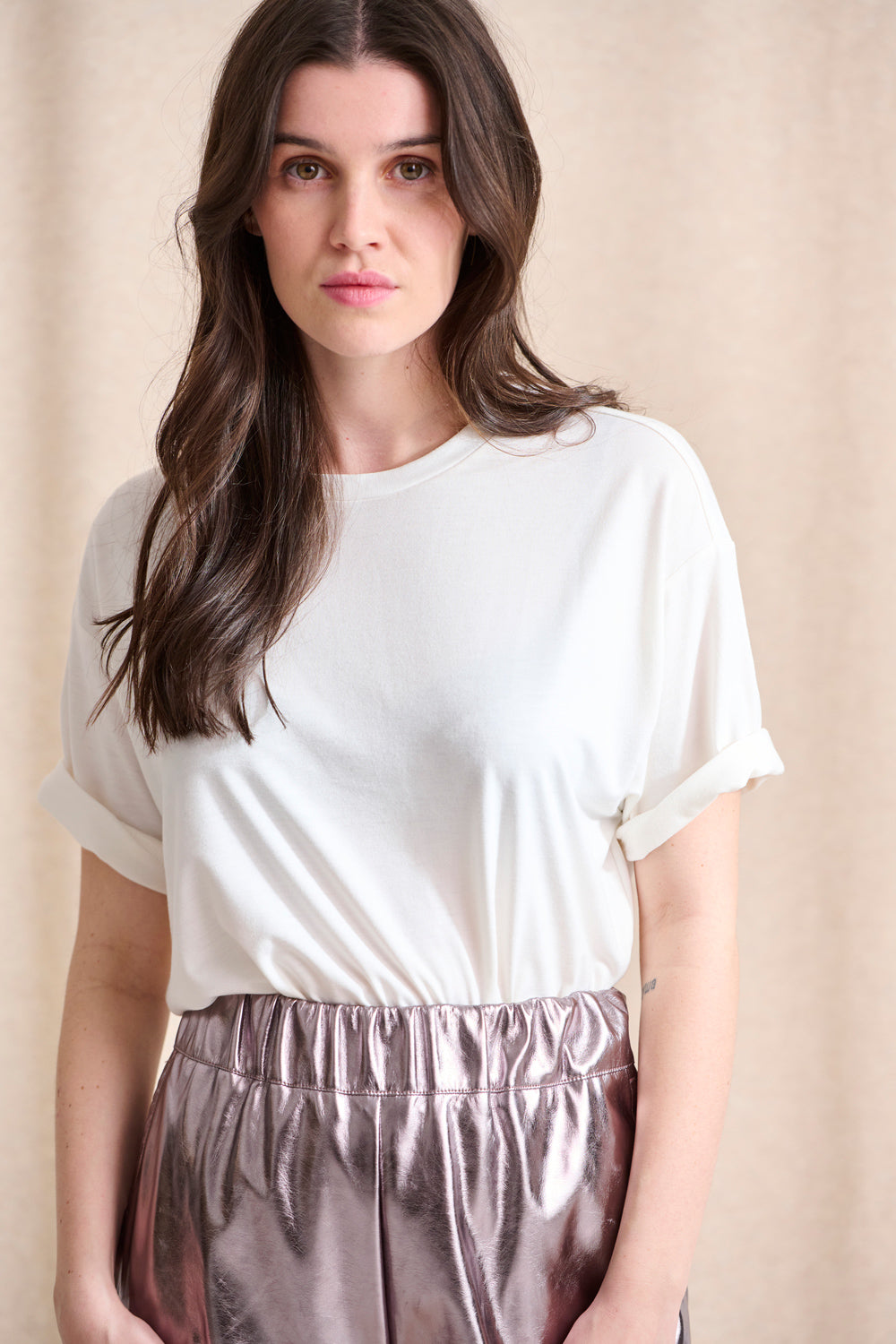 Ce t-shirt en coton doux est coupé dans une forme droite, ni trop loose ni trop près du corps.