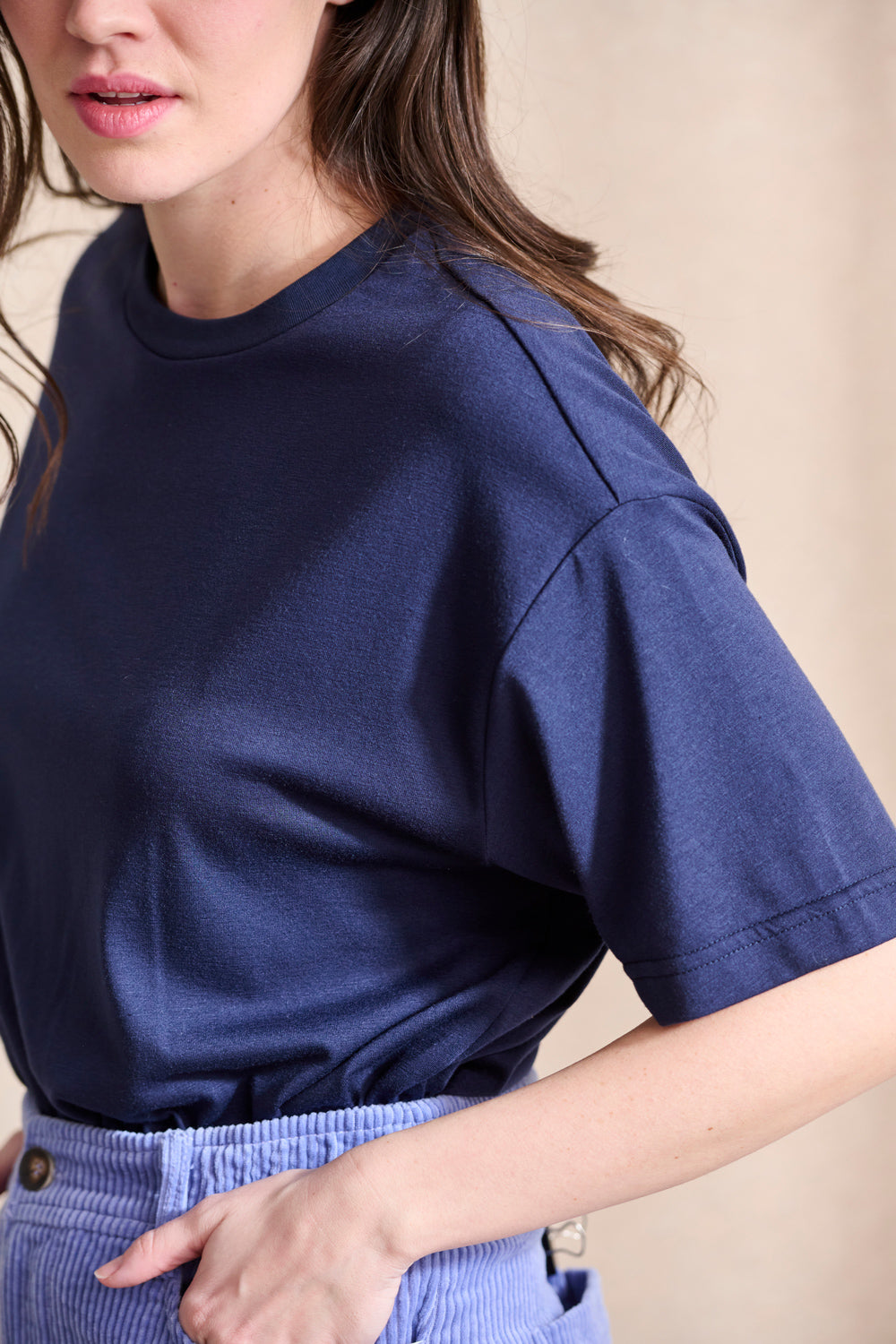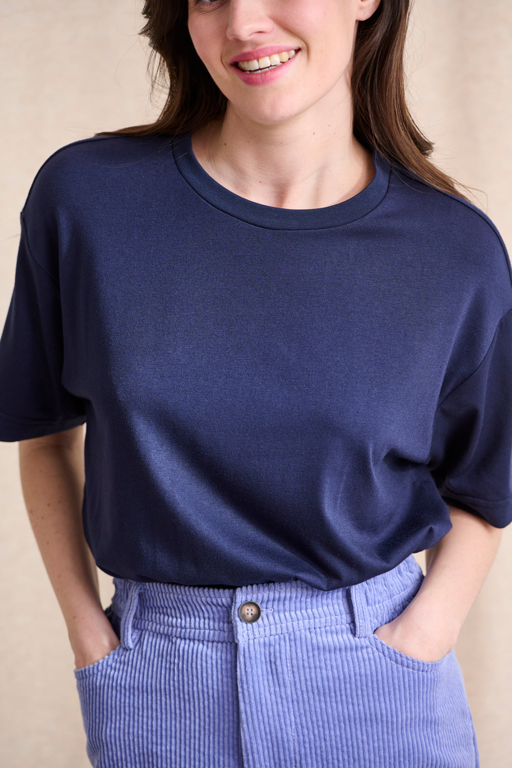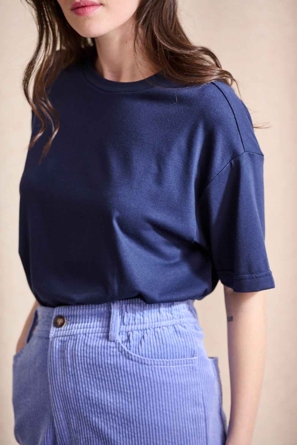 Ce t-shirt en coton doux est coupé dans une forme droite, ni trop loose ni trop près du corps.