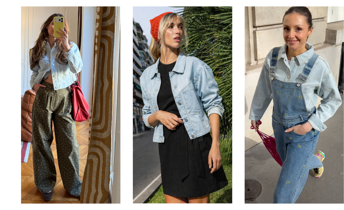 C’est une veste qui fonctionne avec tout: un jean brut, le pantalon Palot assorti ou sur une robe uni. Elle structure le look et devient rapidement un réflexe dans le vestiaire.